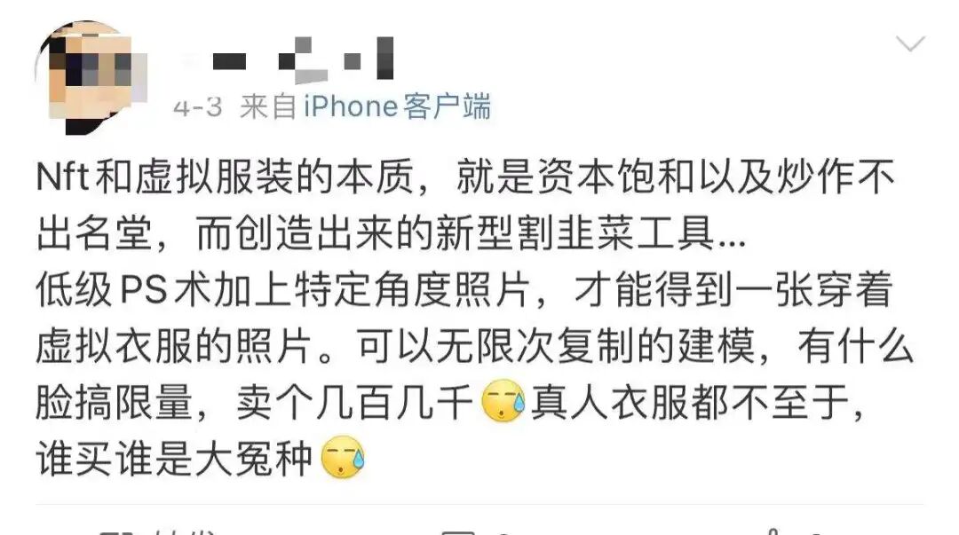 有人把虚拟服装当社交工具,有人也认为其本质是新型割韭菜工具,谁买谁是大怨种。