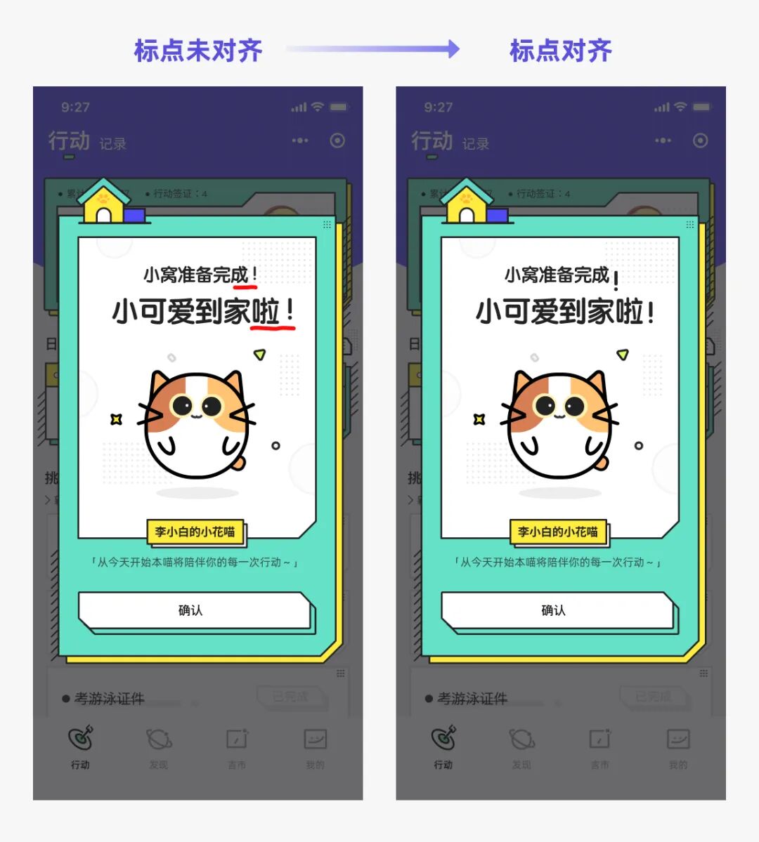 4. 标点符号的细节很重要:有的字体标点符号与文字看着不在一条线上,记得一定要对齐!