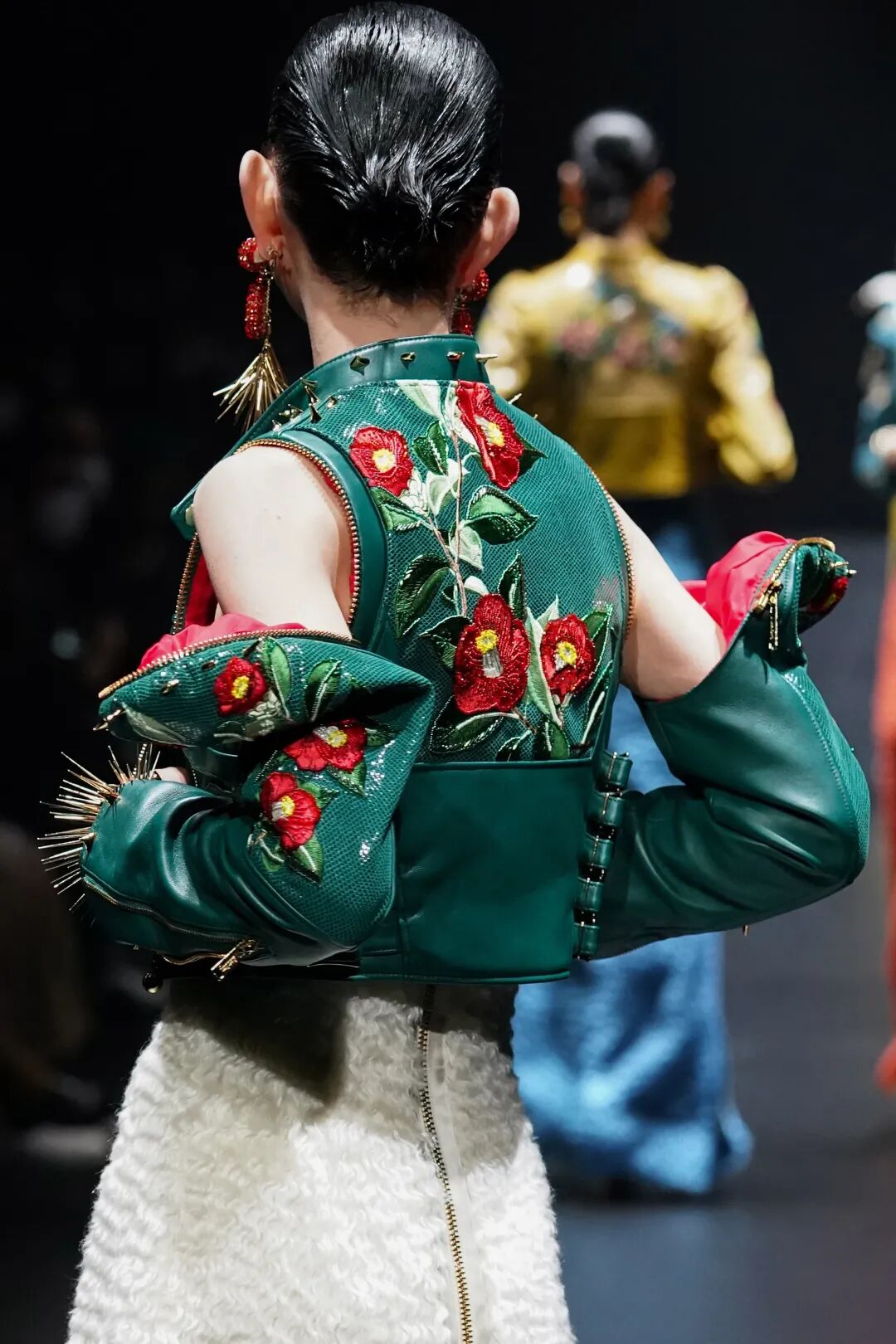 与开始相比,结束时的色彩更加亮眼,蝴蝶和花朵的点缀将女性的优雅与力量升华。通过他的花卉和刀片的排列,高桥塑造了这个美丽的系列野兽,一个矛盾的旋律。