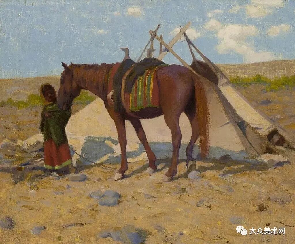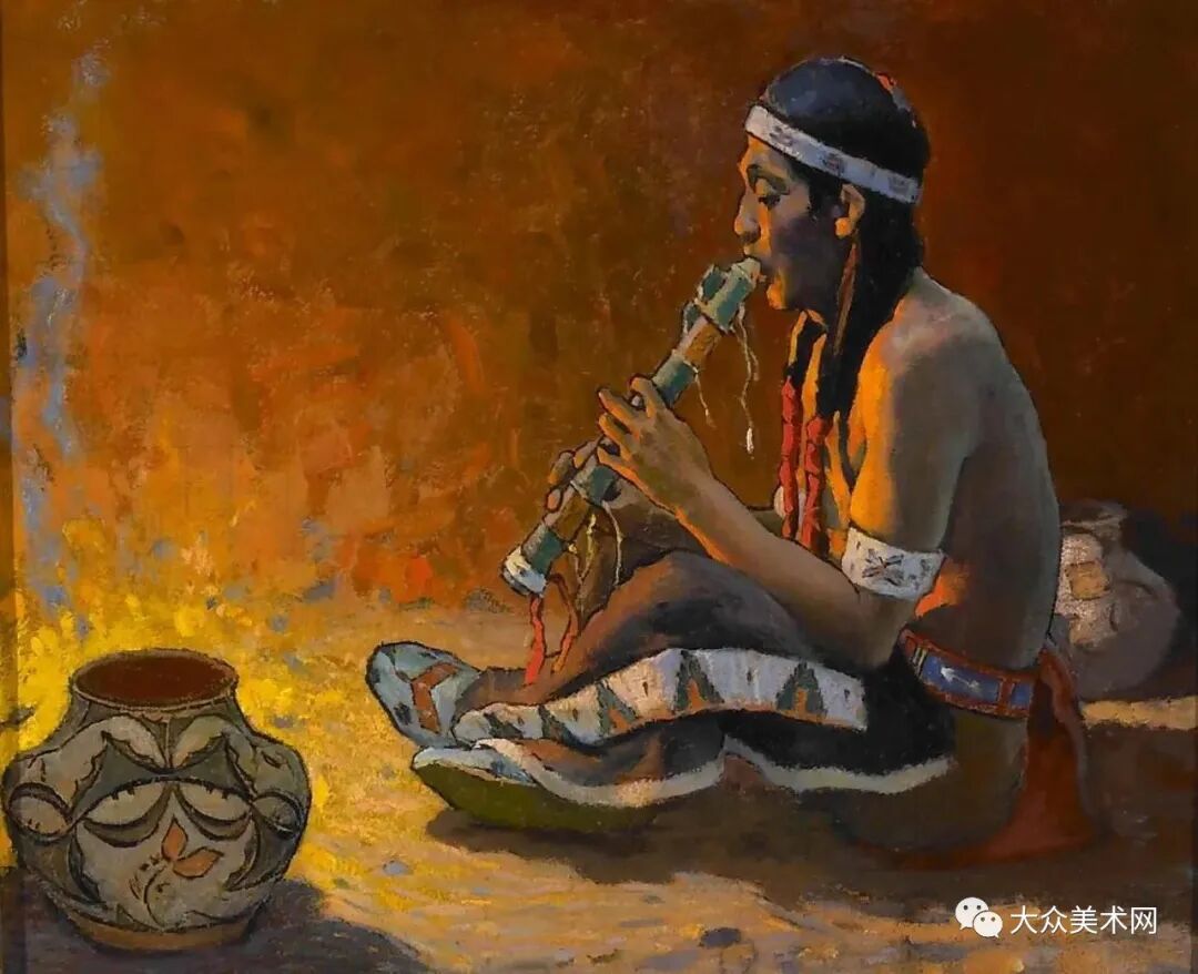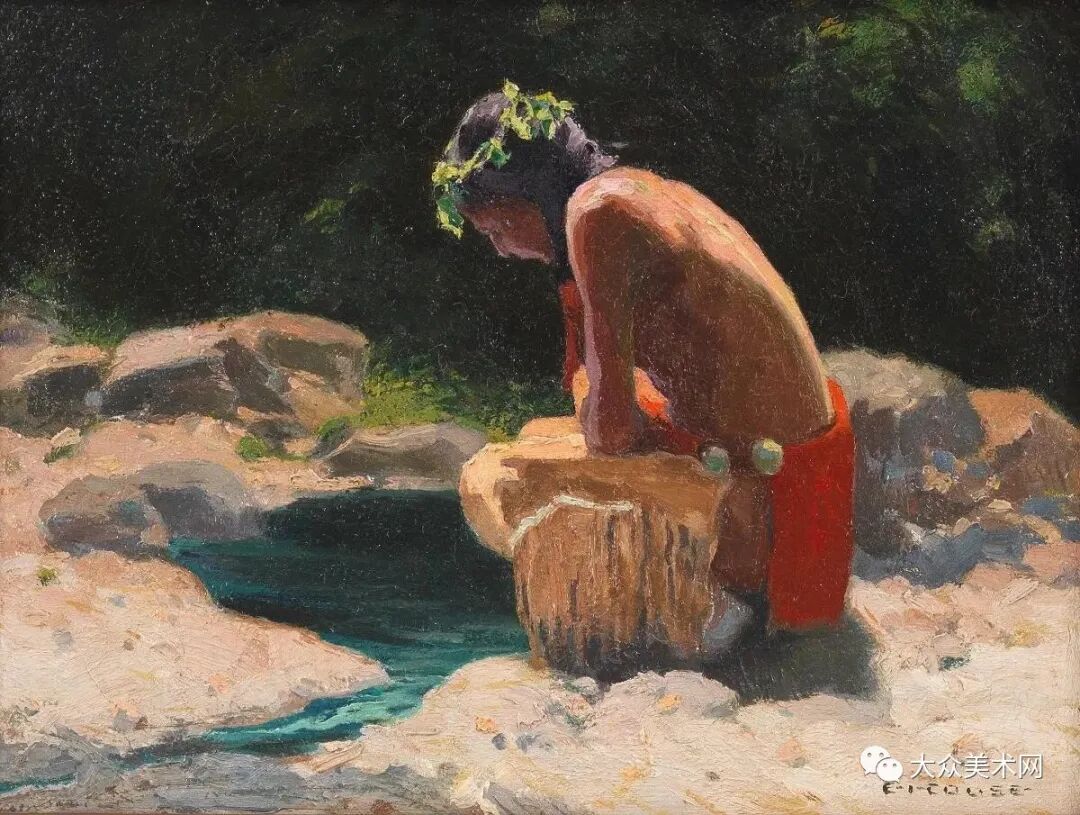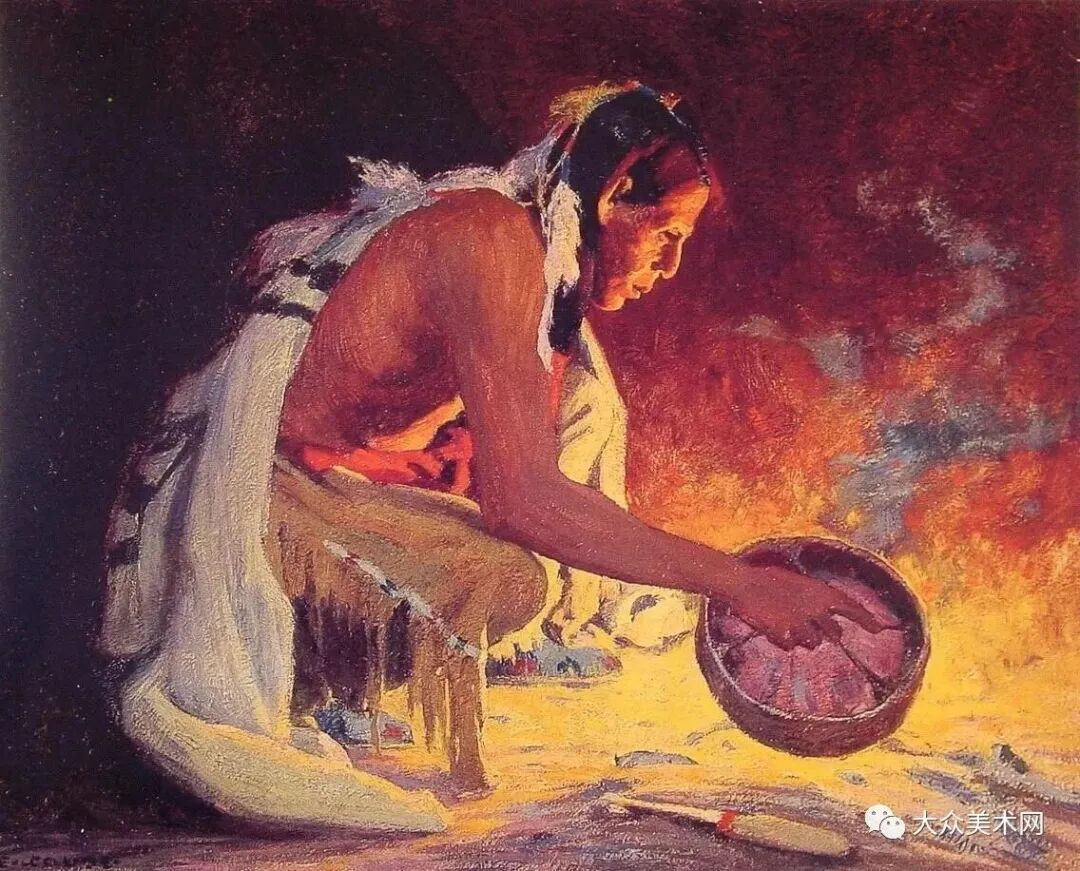 伊恩格·欧文·库斯(Eanger Irving Couse,1866-1936)是一位美国艺术家,也是陶斯艺术家协会的创始成员和首任主席。1866年9月3日他出生于密歇根州萨吉诺。奇佩瓦人住在那附近。年轻的Couse对美国原住民文化的兴趣很早就得到了发展,他的艺术本能也得到了发展。画美洲印第安人成了他毕生的志向。