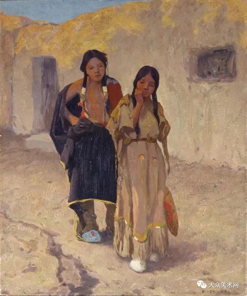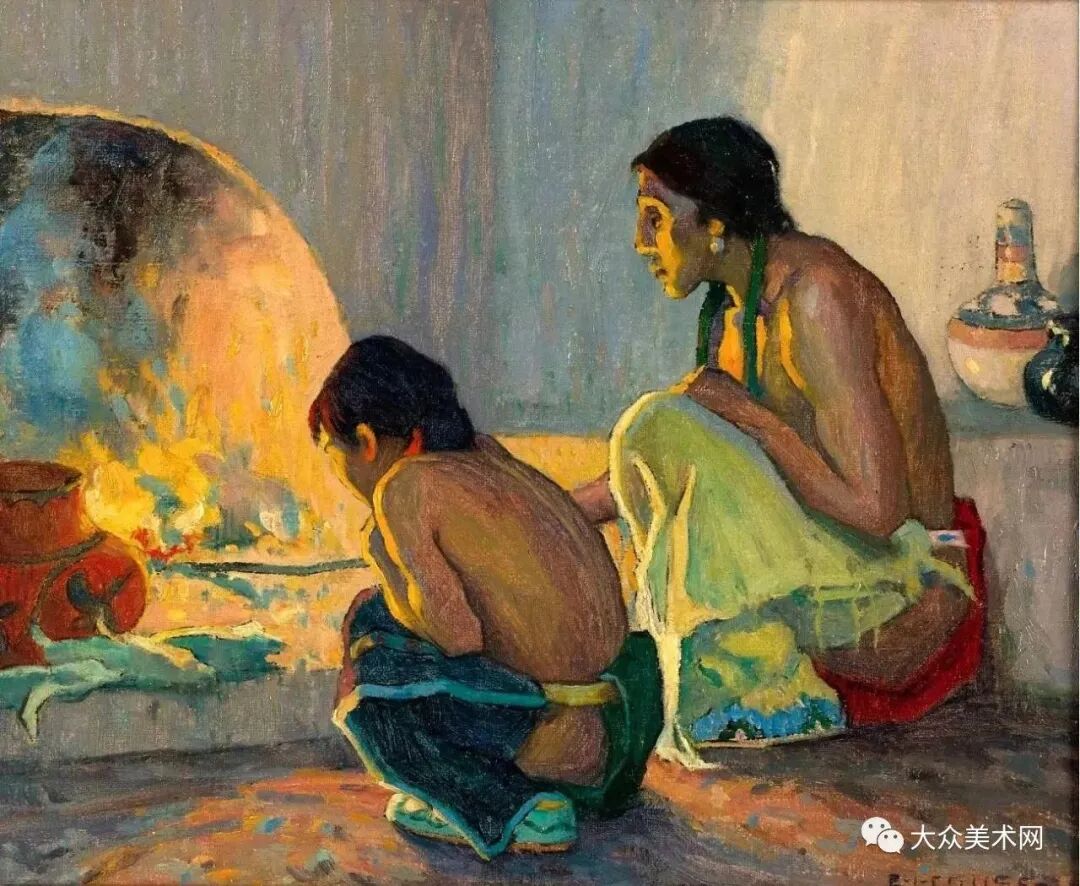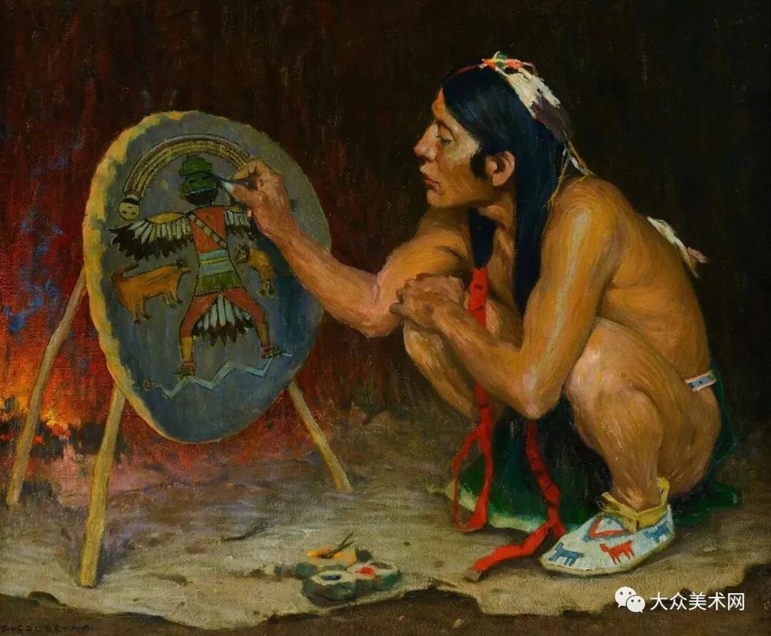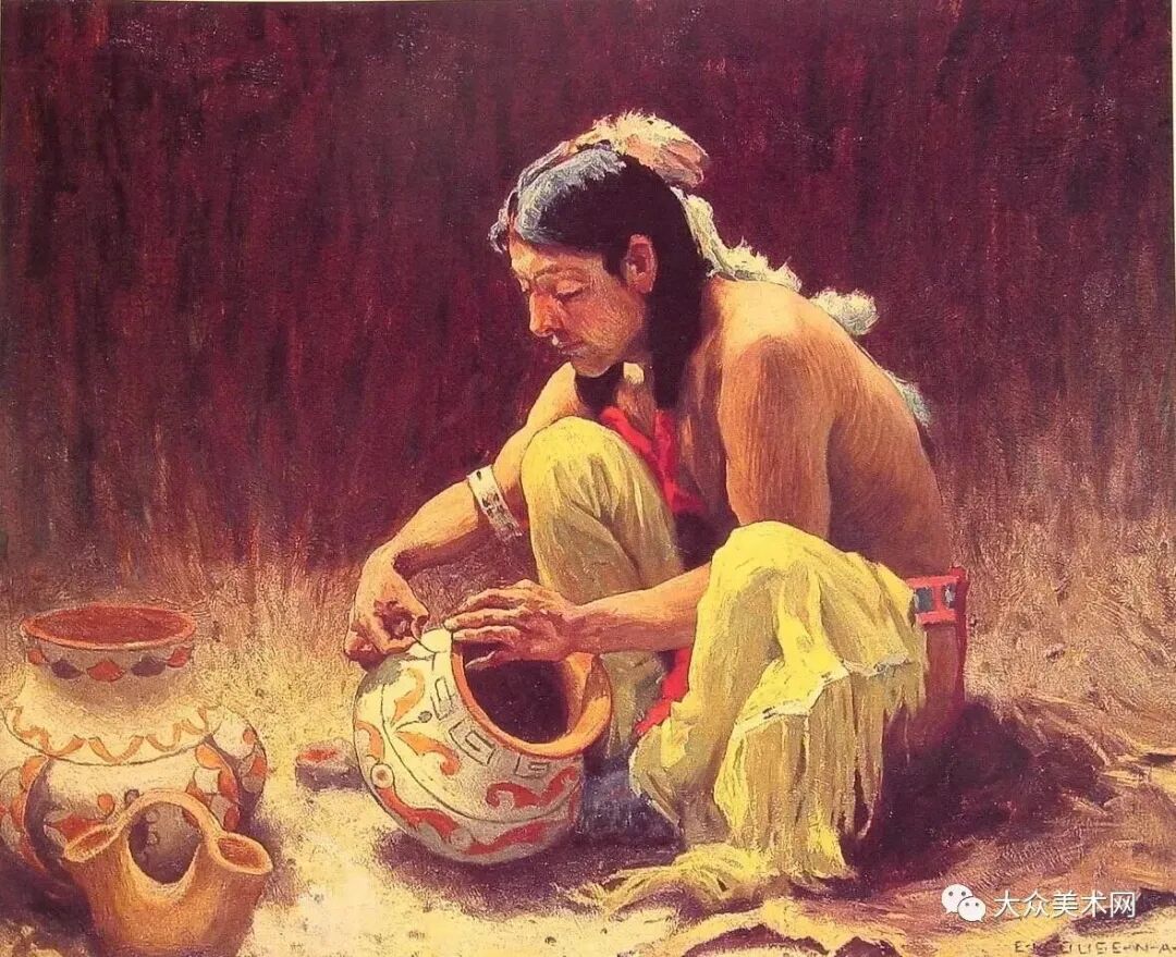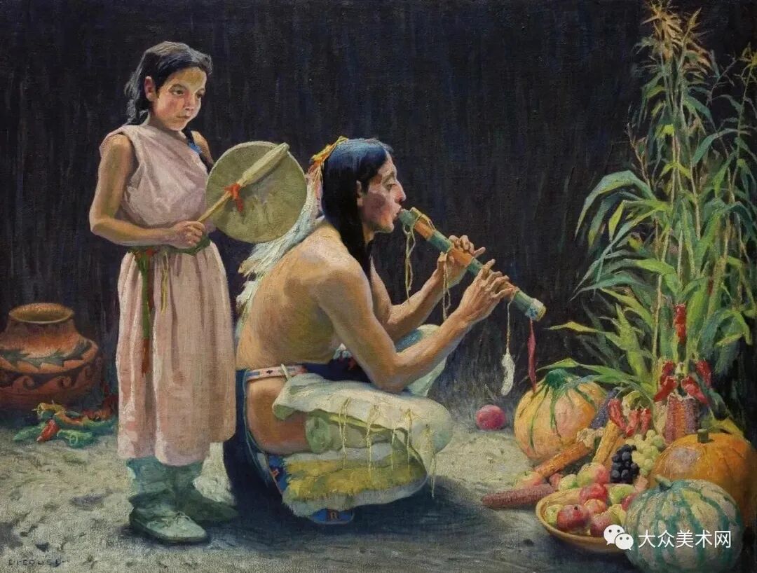 伊恩格·欧文·库斯(Eanger Irving Couse,1866-1936)是一位美国艺术家,也是陶斯艺术家协会的创始成员和首任主席。1866年9月3日他出生于密歇根州萨吉诺。奇佩瓦人住在那附近。年轻的Couse对美国原住民文化的兴趣很早就得到了发展,他的艺术本能也得到了发展。画美洲印第安人成了他毕生的志向。