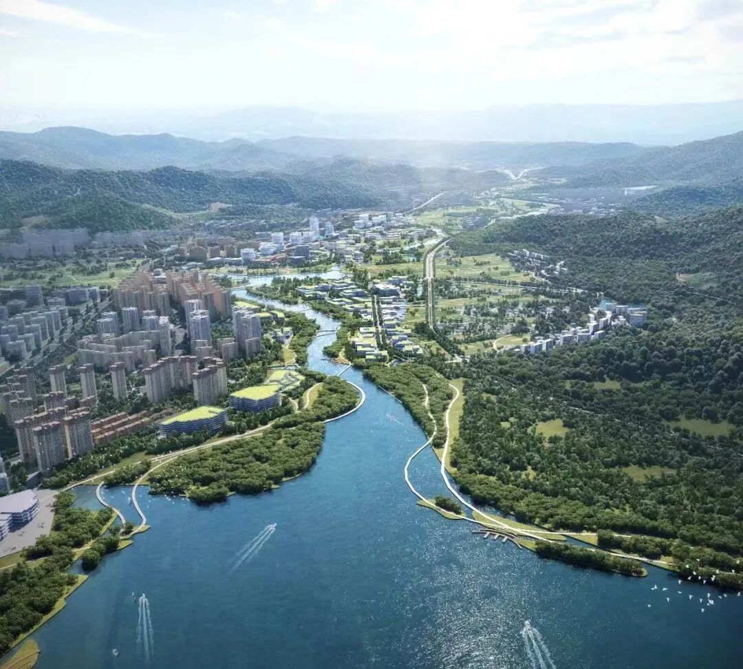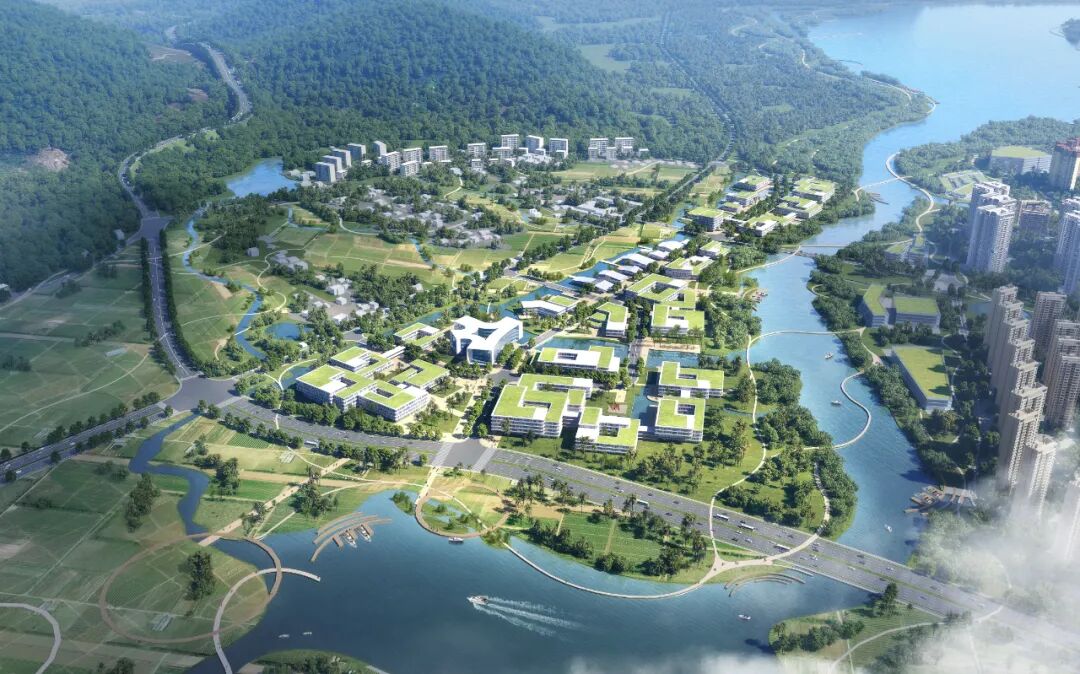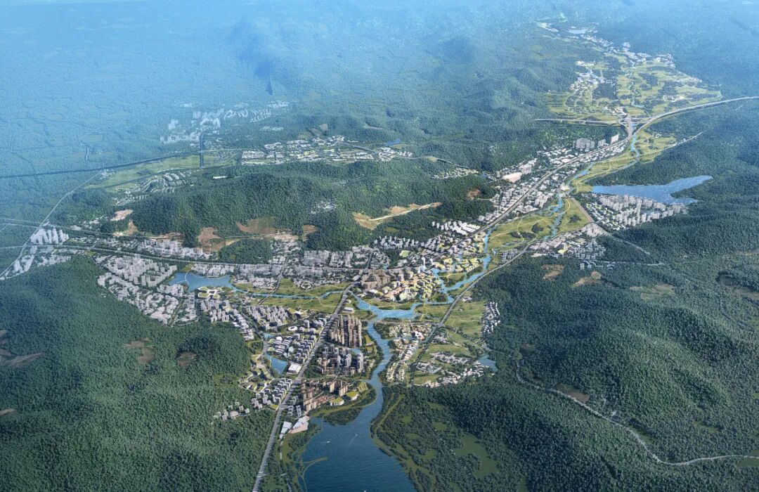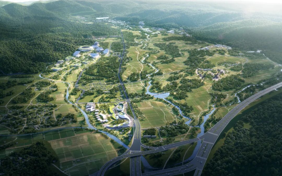 项目规划面积为80.72平方千米,设计方案依托片区内环绕的群山,蓝绿交融生态资源本底,便捷及丰富的交通脉络,实现与周边片区功能协同,差异化发展打造未来的城市发展典范。方案设计以生态基底为出发点,充分发掘山、林、湖、海、田自然资源禀赋,通过“依山,理水,链田, 塑岛,兴村,营城”多样化手段打造自然生态环,多层次景观风貌,以及复合交通走廊,“上山入水”的沉浸式游玩体验。