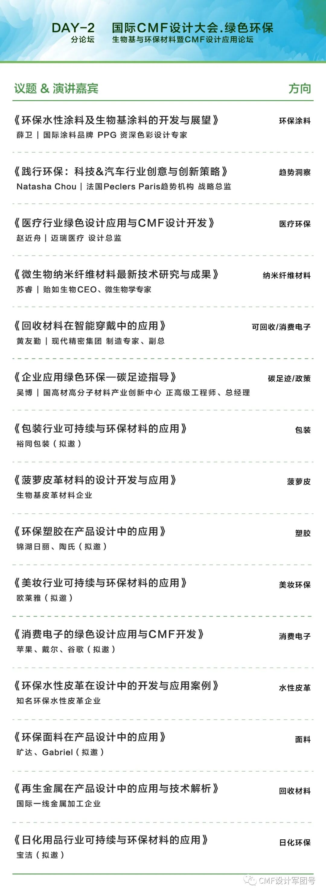 在此大背景下,CMF设计军团将于12月1-2日在深圳举办《2022国际CMF设计大会》,以「绿色环保」为主题,聚焦前沿趋势,针对环保材料与产品设计应用,重点探讨绿色可持续的CMF解决方案。