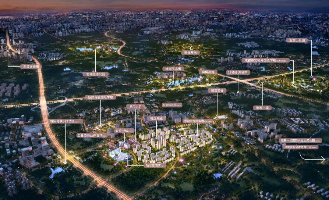 从消费场景来看:板块西侧约3km的天府沸腾小镇与项目南侧约4km的龙潭寺商圈,不仅让网红打卡地成为“家门口的烟火场景”,约40余万㎡的龙潭寺TOD商业规模也将满足板块日常消费需求。