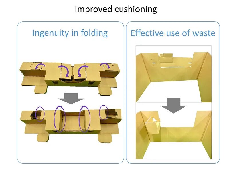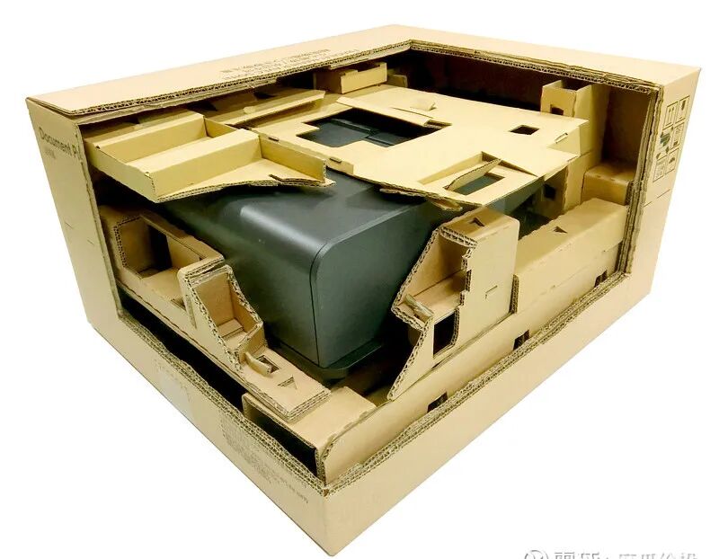 KYOCERA Document Solutions Inc.公司设计的重型精密机用瓦楞纸板缓冲材料包装。考虑到可持续发展目标,采用瓦楞纸板代替泡沫树脂作为紧凑型产品的包装材料,尽管机器很重。由于支撑区域狭窄,我们设计了更好的纸板折叠形状。我们用它开发了一种高缓冲包装。成本比传统相同重量产品的包装低25%。