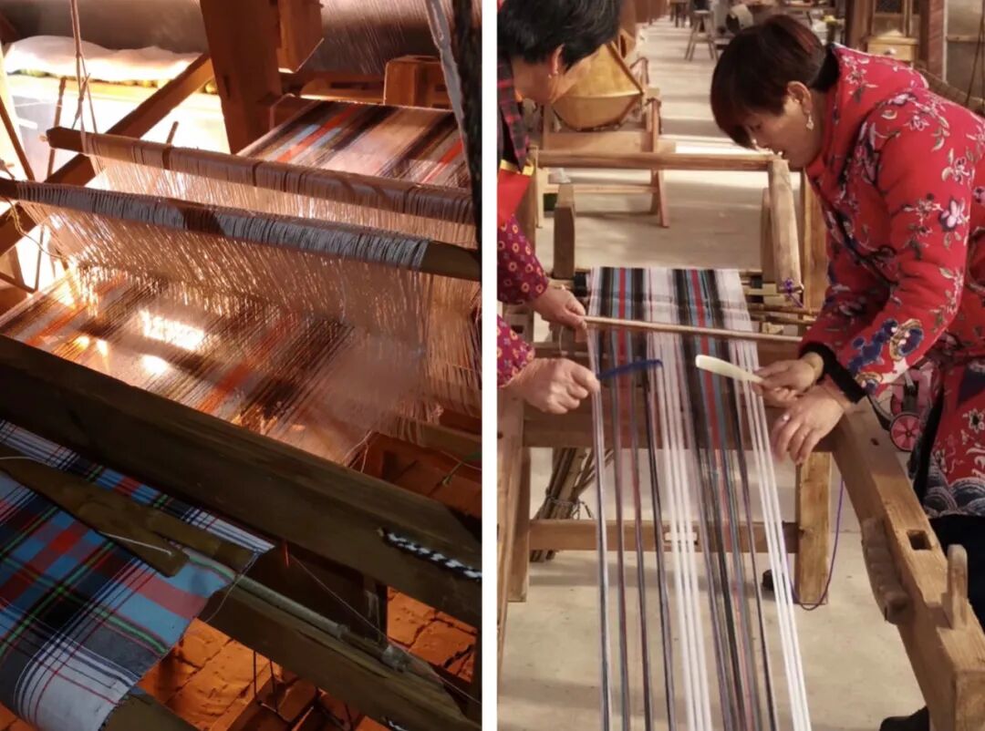 杨老师常为到农场的客人讲解土布知识、演示织布方法