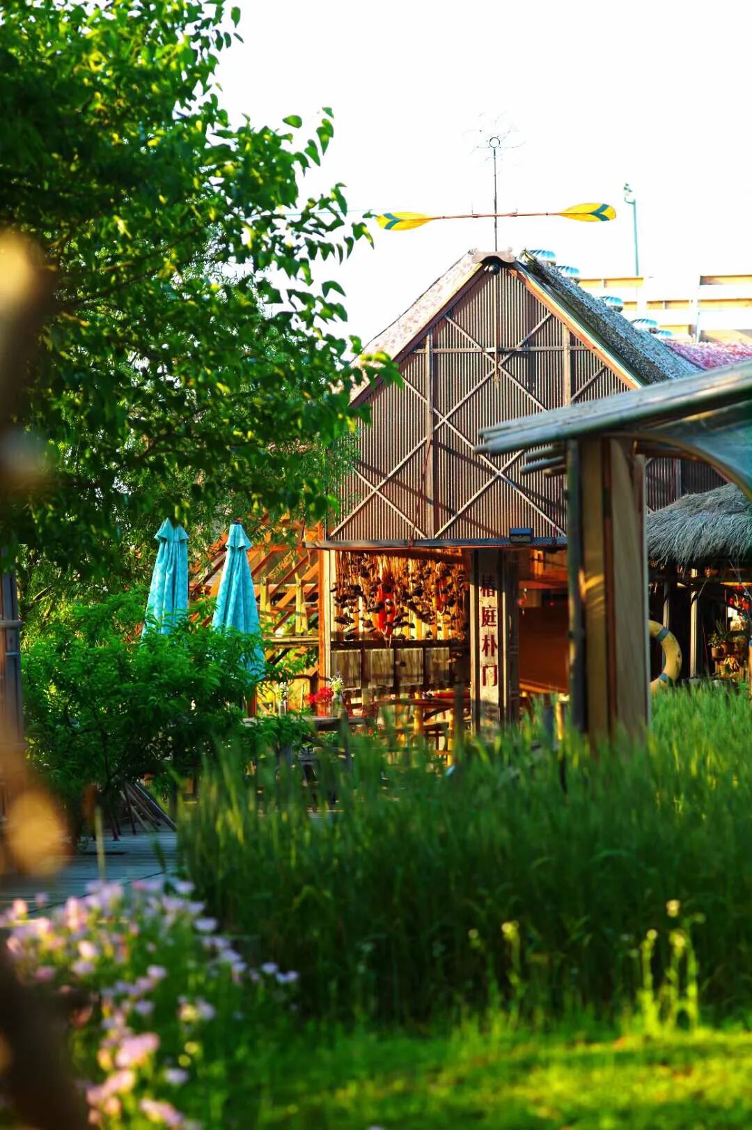 即使盛夏,草堂也凉风习习,坐在这能望见大半个椿庭,田野、农人、白鹅、河流,总有农场访客拿着电脑躲进来,一边工作,一边“悠然见南山”。