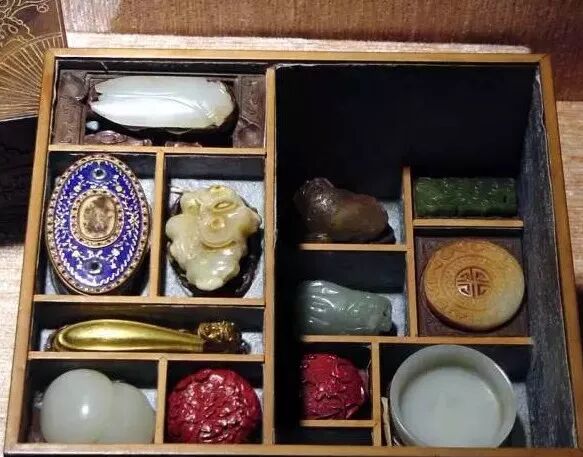 打开来看,不同的空间摆放着大小不同的珍玩,严丝合缝,不浪费一丝空间;