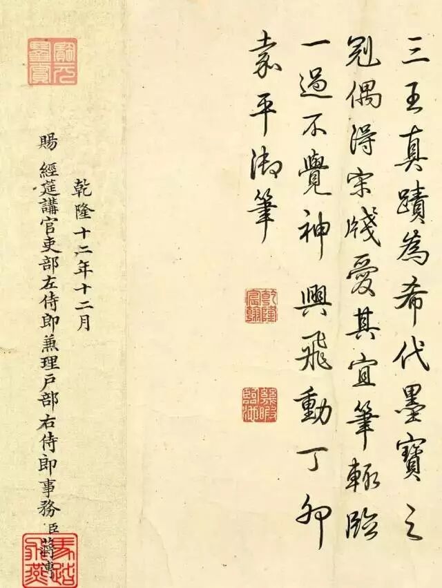乾隆十二年丁卯1747年清高宗(乾隆)书法手卷《三希文翰》弘历临三王真迹纸本,94.6x25.6厘米。