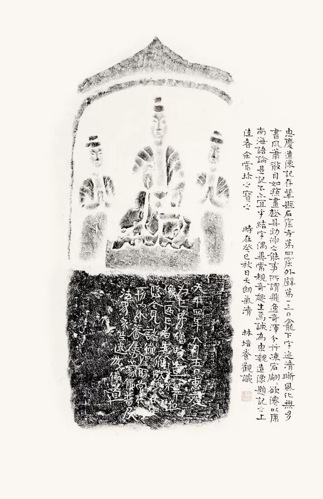 如果暂将刻工用刀的模式——把笔画刻成方硬角出的装饰手段搁置一旁,单就写手用笔的技巧和楷书结字的造型能力来分析,我们会发现,在与《牛橛造像记》前的北魏刻石,如《大代华岳庙碑》《嵩高灵庙碑》相比较中,魏体楷书的成熟与新妍是突飞猛进的。通常被人们误认为是出于民间底层刻工的龙门造像题记,却恰恰无一不是当时门第极高的贵族中之显赫者,所以“龙门二十品”并不能简单地说出于民间刻手,恰恰相反,它们却是当时贵族文化的产物。因此,这些作品的写手,在孝文帝推行汉化的高潮中,有可能已经在尽力学习南方先进的楷书了。