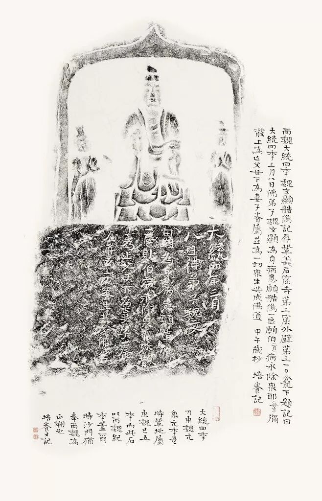 北魏至北齐、北周的造像题记,由于宗教的崇拜,其数量是无法统计的,这里我们当然不能一一列举。如果加以概括分析,龙门石刻造像题记中的精品,由于有着孝文帝兴建洛阳的背景,又主要出于北魏鲜卑贵族的拜佛场所,或许可以视为佛门造像中倾向贵族化的一端,这从龙门佛像本身的景致造型中亦可得到启示。而药王山的《姚伯多兄弟造像记》在对比中则可视为造像记中具有下层平民化的一端。
