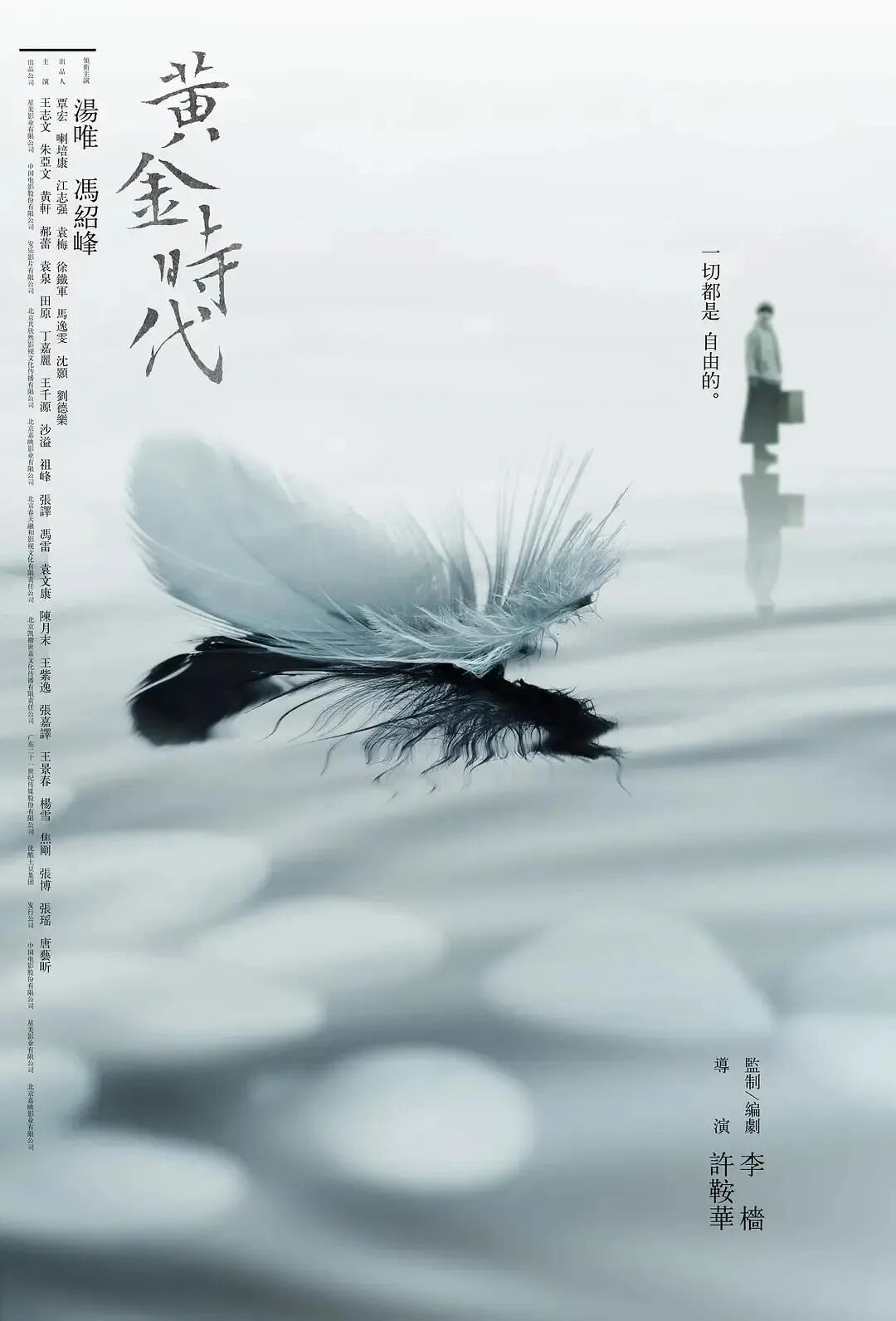 水墨晕染的海报,一句话“一切都是自由的”和海报中间的羽毛形成了呼应。