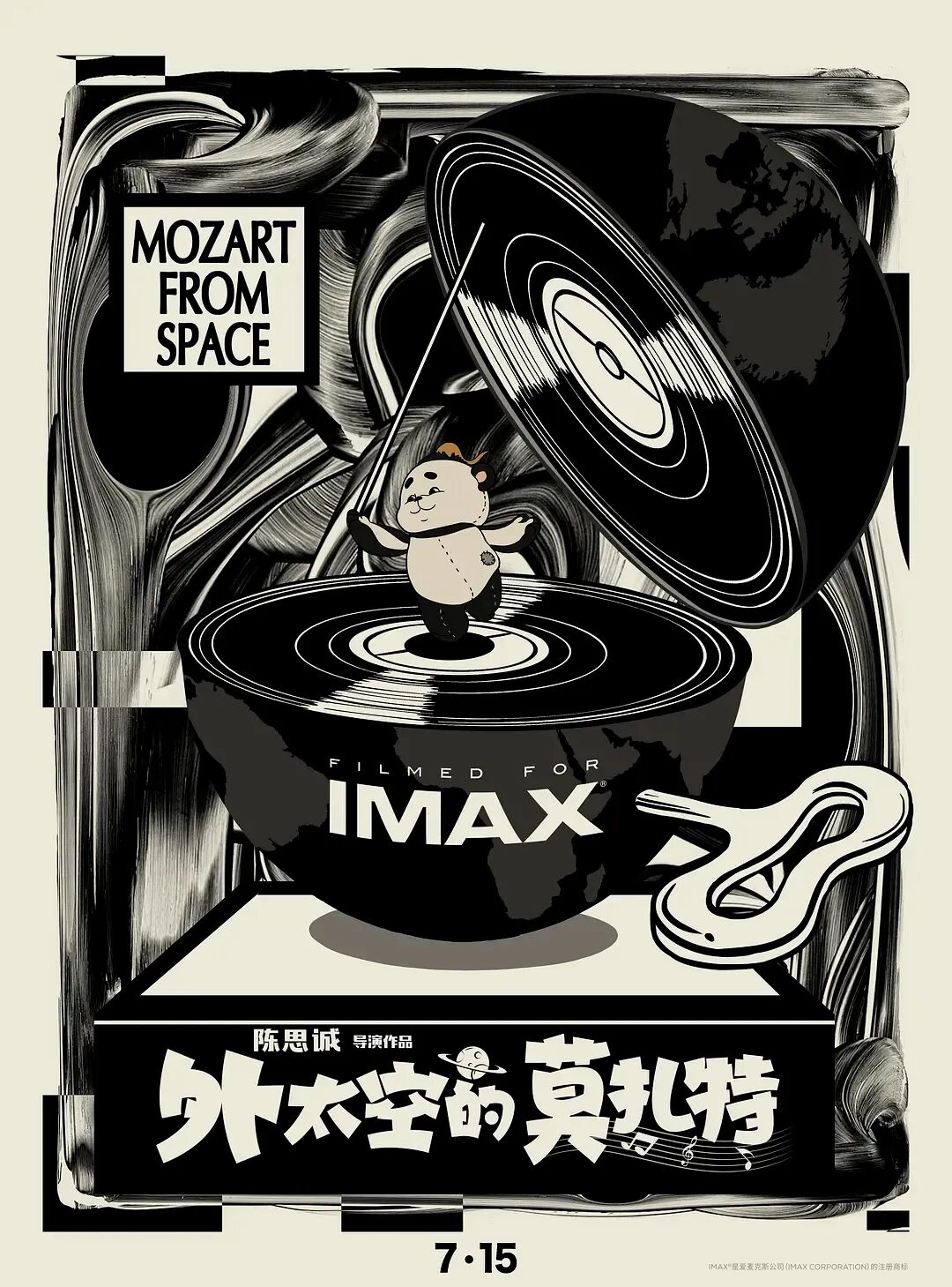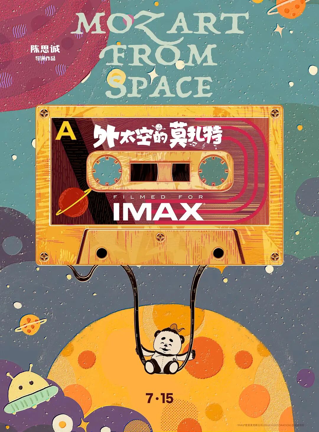 手绘风格的海报,点缀着磁带、耳机、八音盒等音乐元素,外星人莫扎特则在音乐中自在徜徉,蕴藏着不同时代的音乐记忆,小细节处理得很给力情怀满分,把对外太空世界神秘奇幻的想象具象化了!