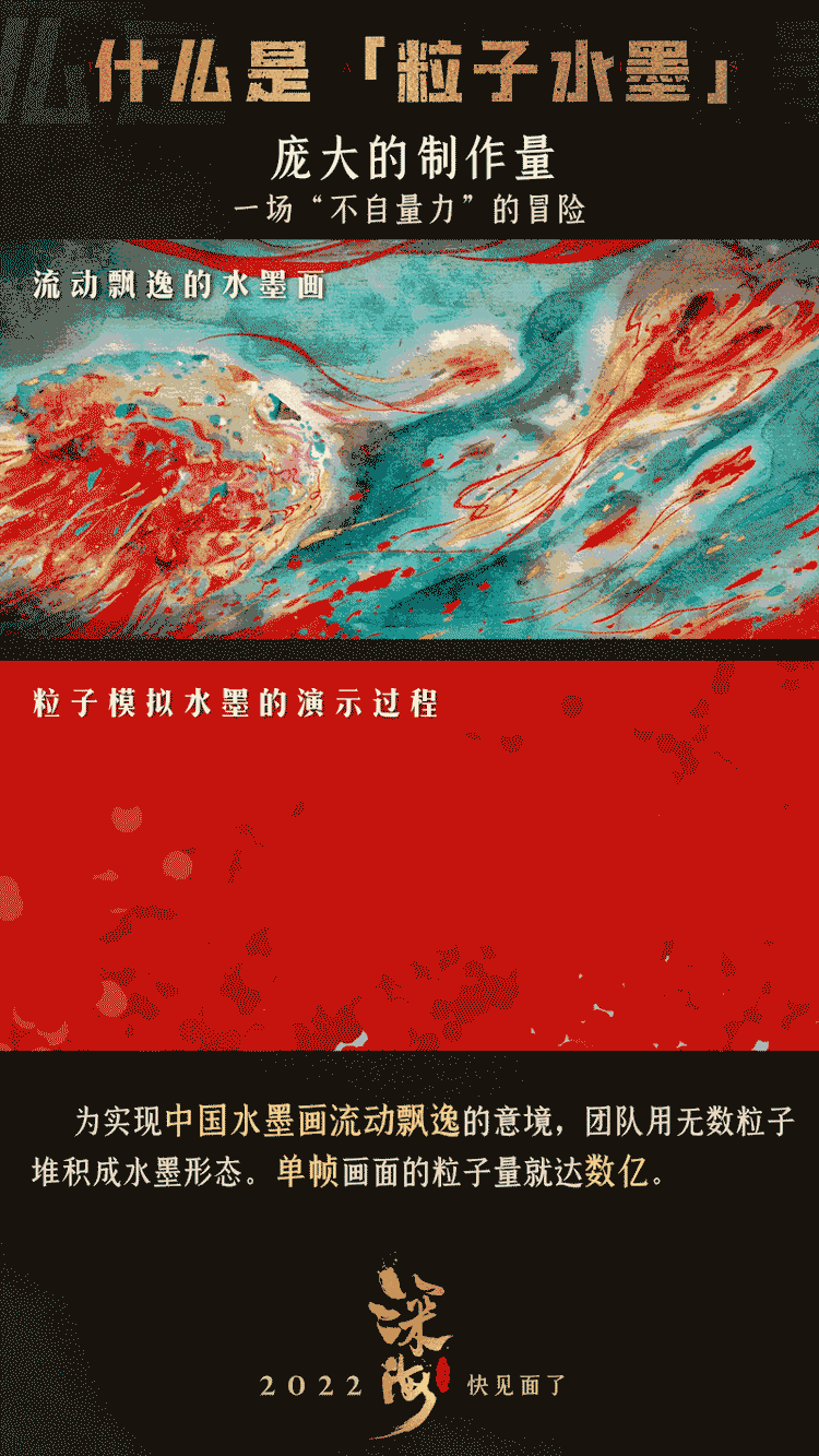 更携制作团队进行了开创性的研发了粒子水墨动画