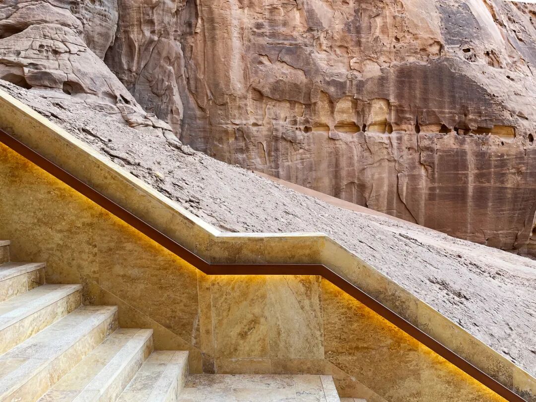 悦榕庄欧拉度假村位于沙特阿拉伯第一个联合国教科文组织世界遗产“玛甸沙勒”15 公里外的土地上。设计结合、呼应了沙特阿拉伯对于未来的畅想、以及度假村所在岩层与古代遗迹间独特的沙漠环境。