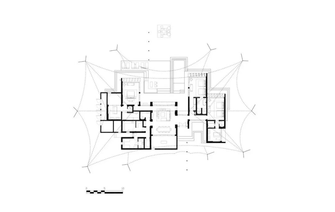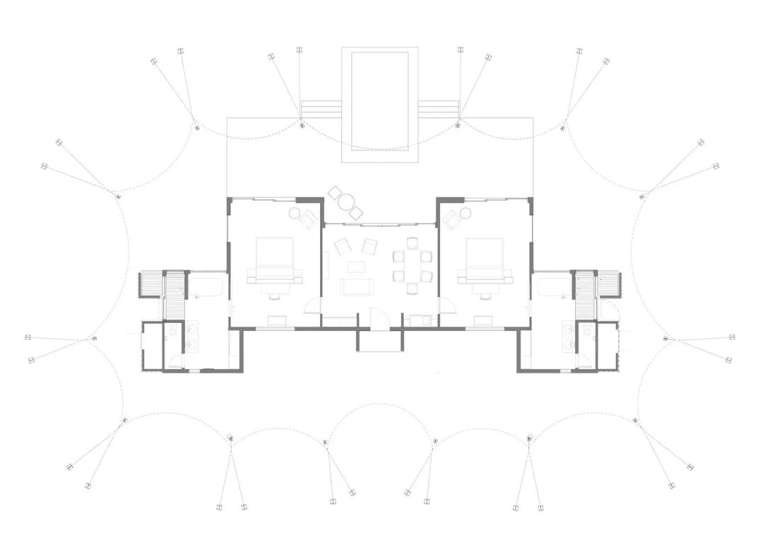 其内空间旨在营造介于室内外间的氛围,并帮助住客感受与自然的联系。客房的露台将从室内空间向外延伸,其上则将覆盖着帆布帐篷。