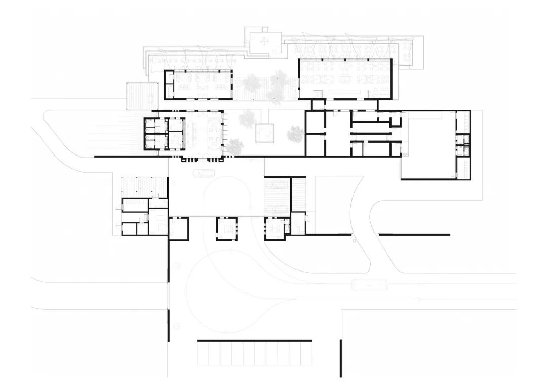 项目在建筑、景观庭院、平台和广场的设计中都采用了3x3米网格的模块化系统。几何网格与周围流动的沙丘形成了鲜明的对比。这种简单而实用的结构创造了丰富的建筑形态和内部空间,使整个项目既能让人在建筑内外感受到体量、重复元素、材料、细节和颜色的统一性,又不失多样性和活力。