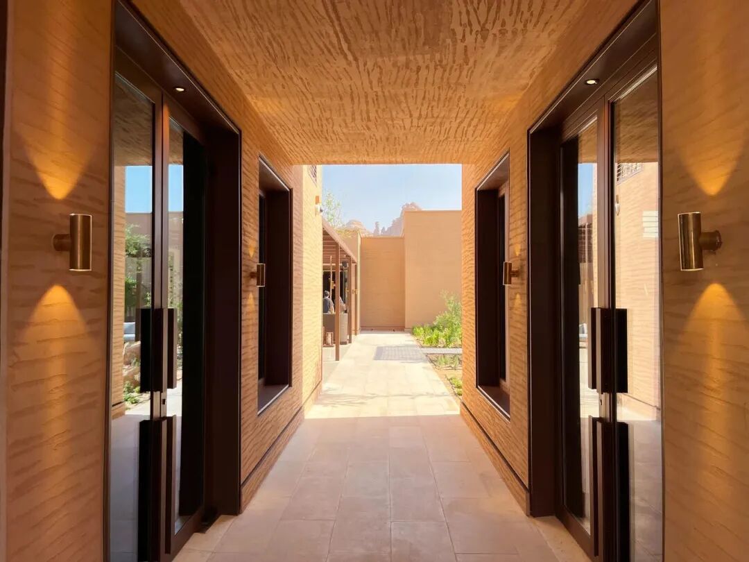 度假村的内饰皆为度身定制,并结合了纳巴泰游牧主题及国际性奢华氛围。其室内设计为对贝都因人生活方式的现代诠释。在度假村中,所有空间都被赋予了以阿拉伯纳巴泰游牧部落及传统纹饰为灵感打造的图案,以此呼应山谷丰富的文化遗产。此外,沙漠的色彩也将成为建筑整体的“调色板”。
