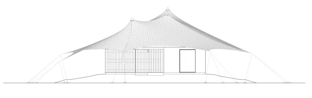 采用了环保的“轻触式”设计方式,以此将度假村与 山谷的自然风光无缝衔接。度假村内的每个套房都包含简单的露台、及坚实的结构,与邻近的岩石形态相呼应。此外,多样的沙色帐篷帆布也用于创造屋顶与室内间的自然通风环境,并为其提供遮阳。具有三重设计的帐篷形架构既创造了柔软的屋顶线条,同时也将建筑融入已有的景色之中。