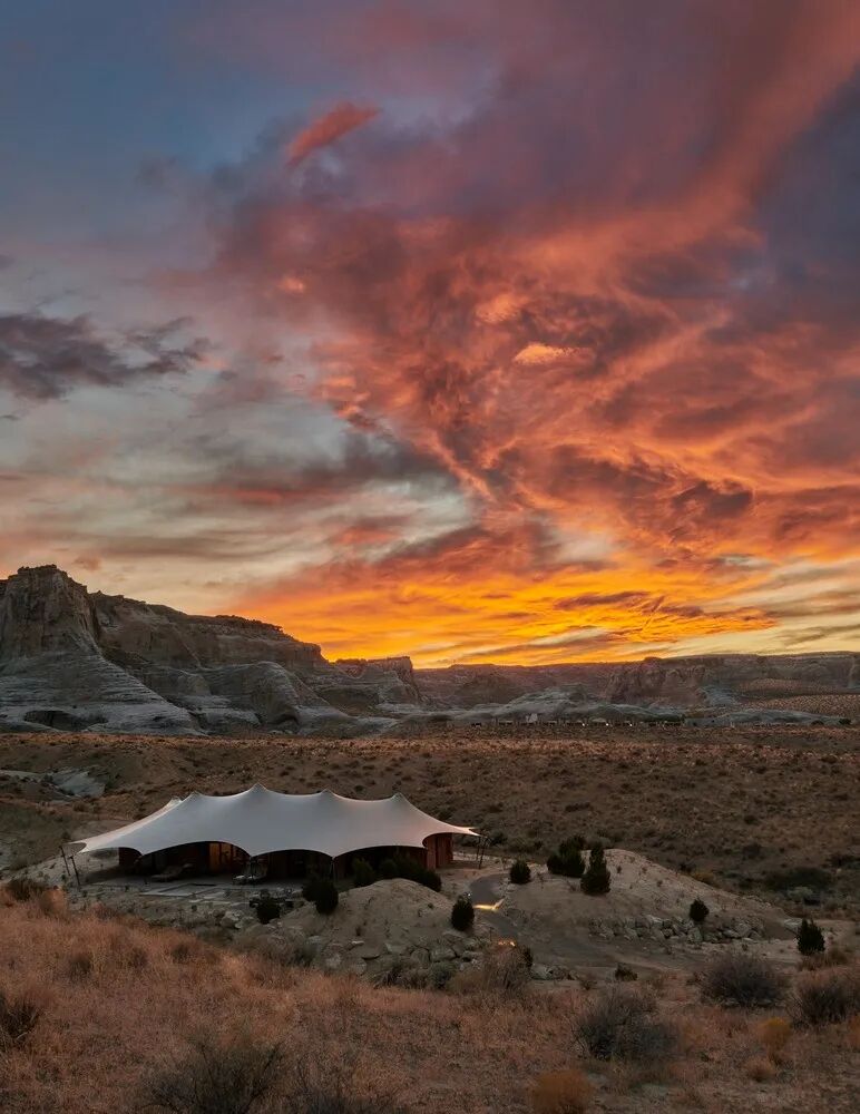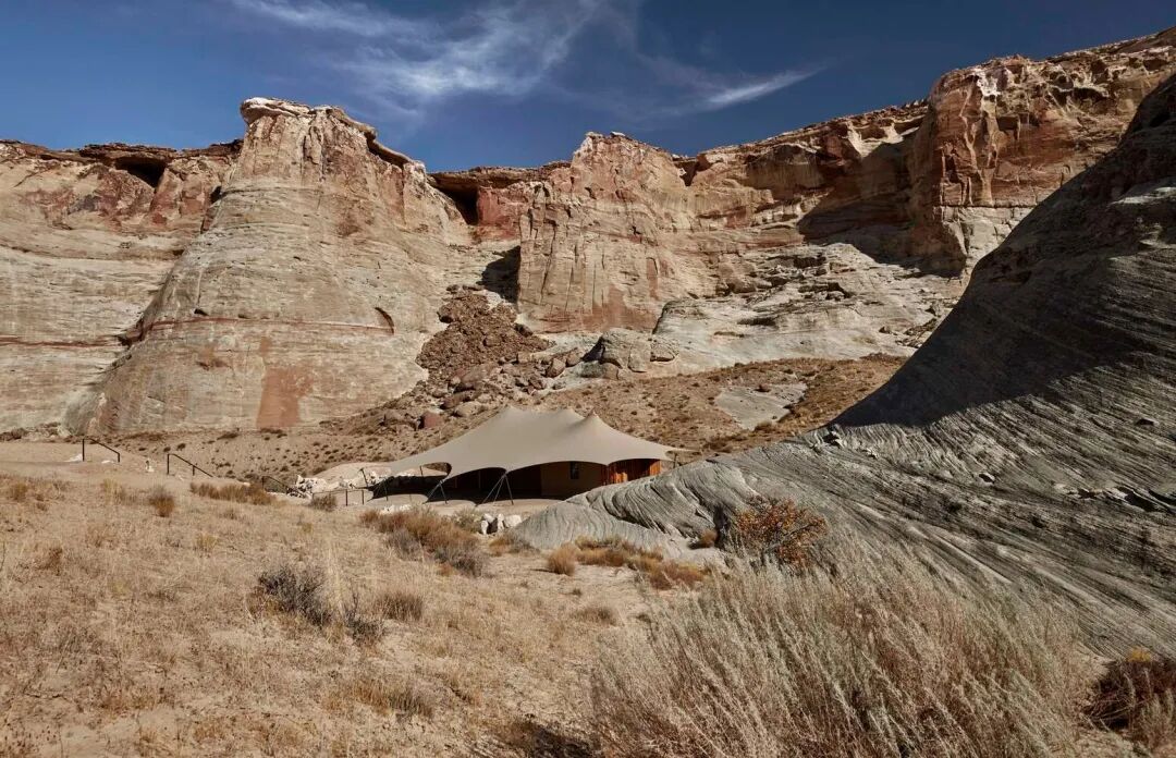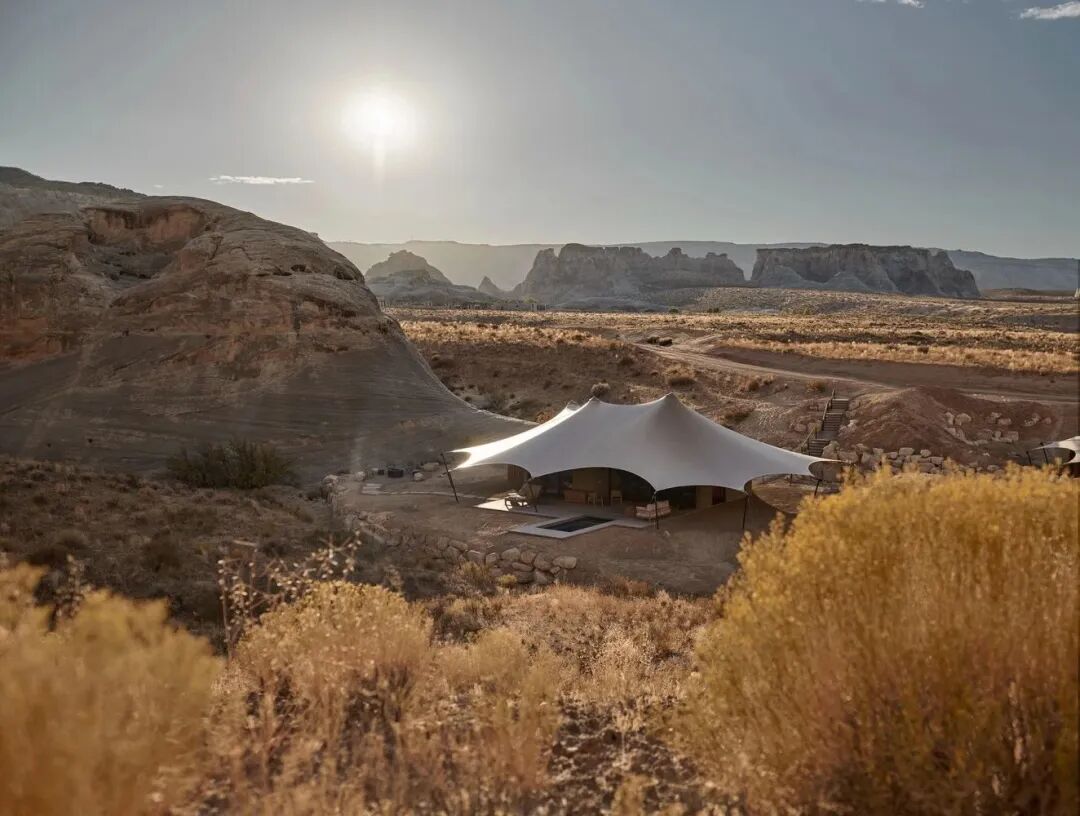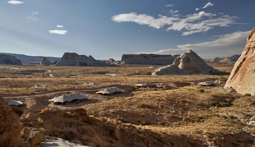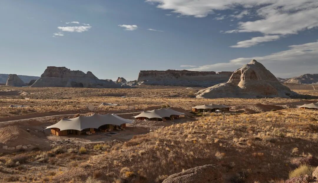 项目坐落于犹他州南部。这是北美有史以来第一个全天候、全年开放的营地,这里共有 10 个豪华帐篷,依偎在犹他州巨大的台地脚下。