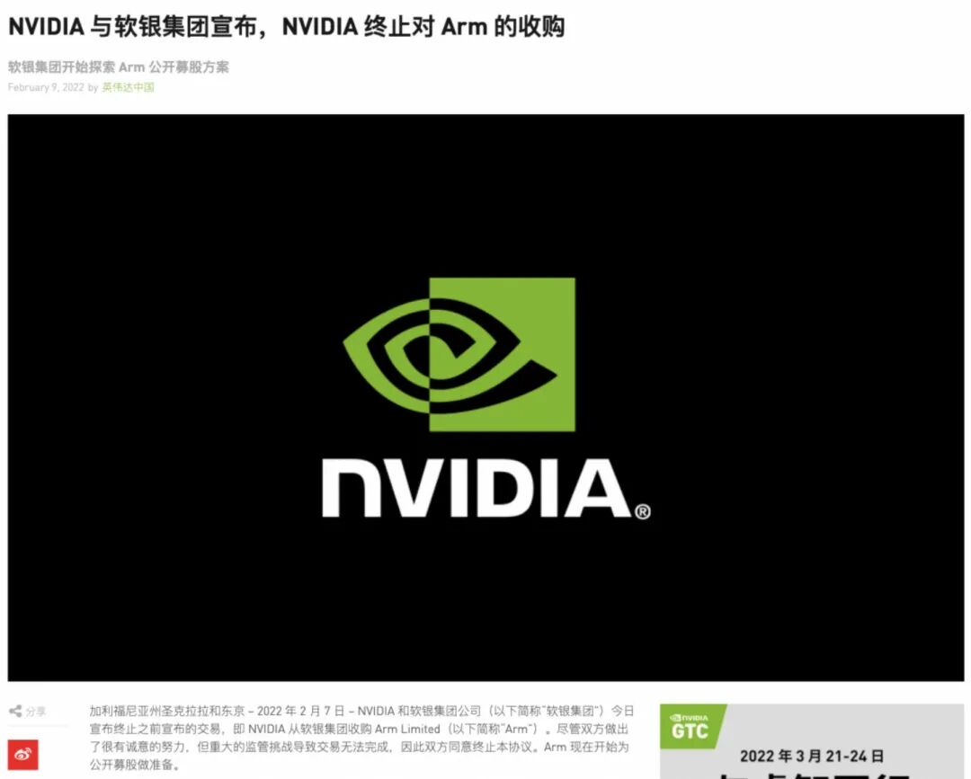 2月8日,英伟达和软银集团双双宣布,英伟达对Arm的收购交易终止。至此,这场为时一年多的芯片行业最大规模收购案以失败告终。