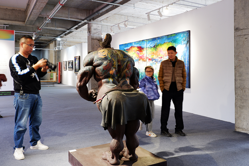 青年写生艺术季现场矗立着青年艺术家的大型装置作品