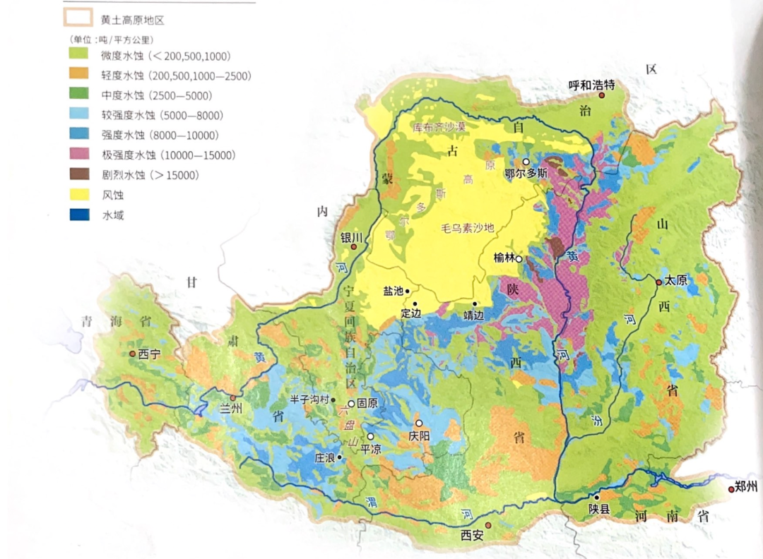 黄土高原土壤侵蚀强度图。图/《黄土高原近60年生态治理分析及未来发展建议》