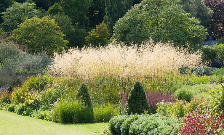 一些细长的茎分布着大量小花或种子的植物非常具有通透性,具有通透效果的植物可以给周边景色带来一种朦胧的观感,比如柳叶马鞭草、巨针茅、花叶芒等。