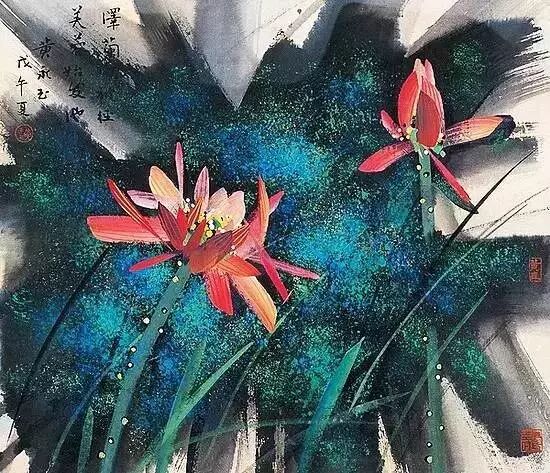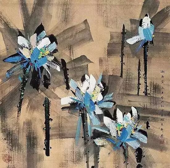 他笔下的荷花,用色大胆却又高节淡雅
