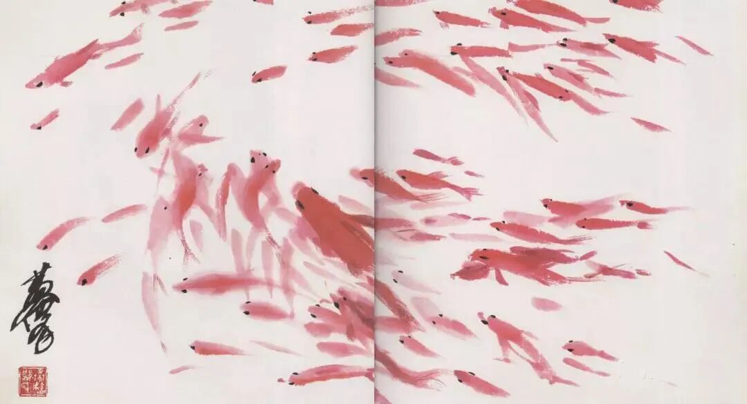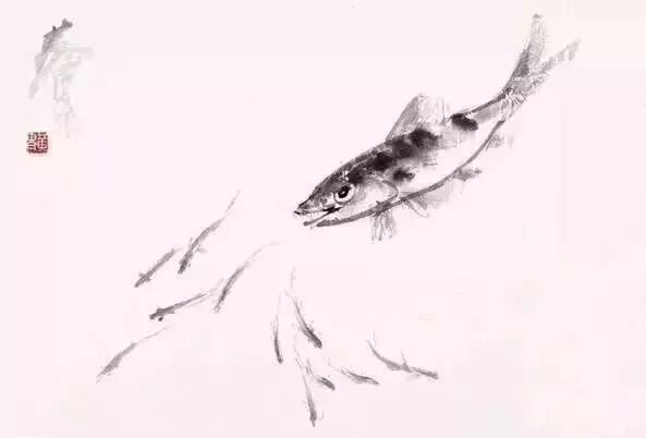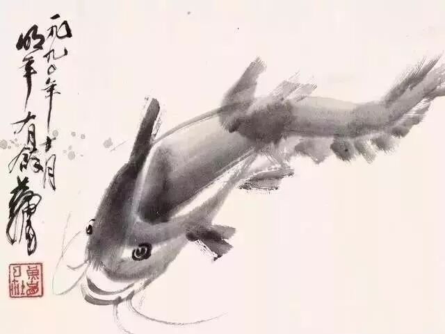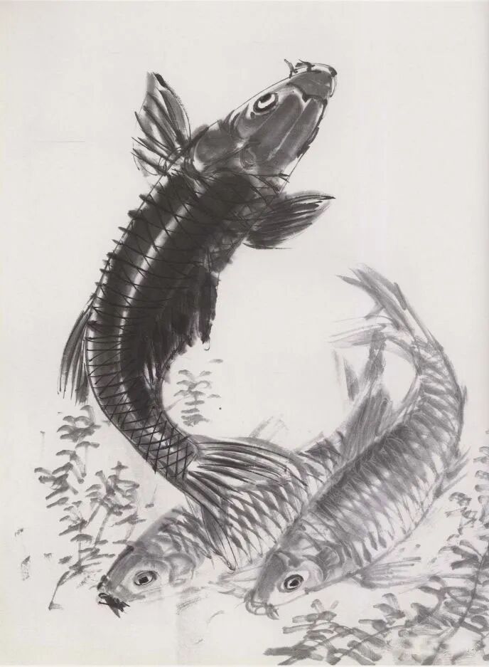 黄胄:“画鱼如果鳞尾须目笔笔无不精工描画,难于表现在水中游动的感觉,亦不可像摄影一样形象逼真。”