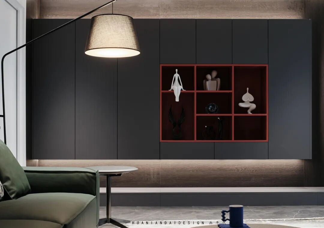 观影区的背景是大部分家庭不可或缺的亮点,但是空间关系却是更高的维度,为了保证公共空间动线顺畅以及入户后的第一视觉,我们调整了电视机背景的方向。