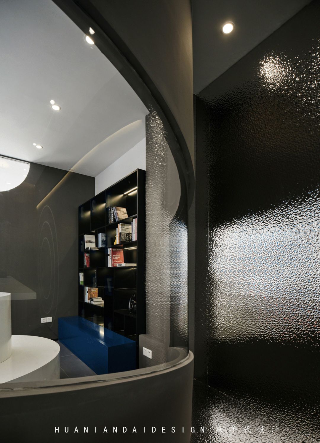 在阅读区的空间,左侧和右侧都采用了不规则的弧形玻璃,光的形状也可以很温柔。