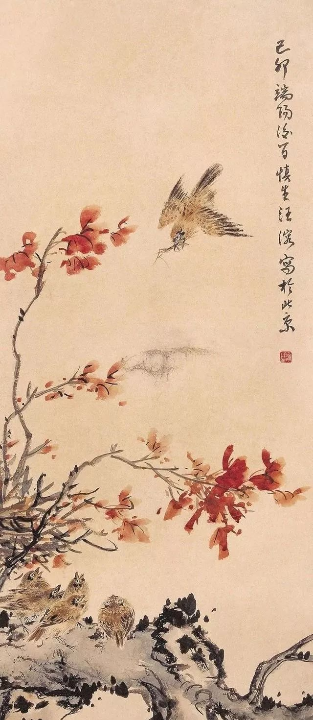举一个下例子,汪慎生当时为了画好一只小鸟,他是观摩了古代绘画大师的真迹,然后再到室外观察小麻雀的生活习惯。抱着这种认真的态度,他画一只小鸟就需要先了解近20多天之后才动笔。