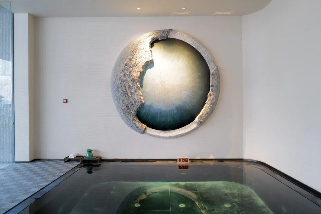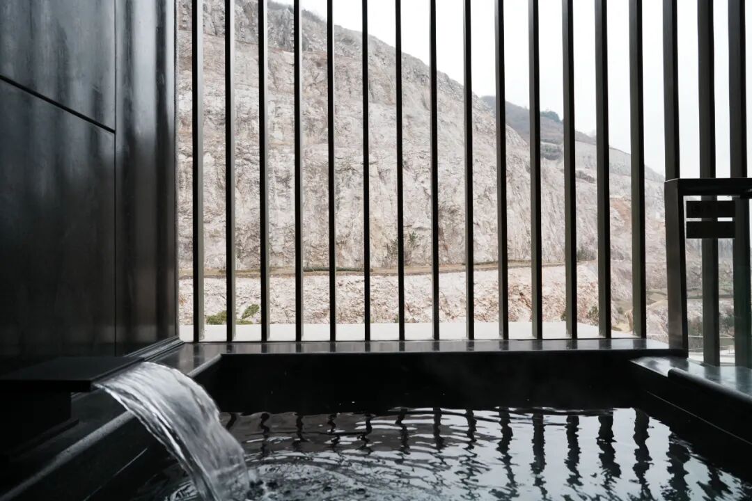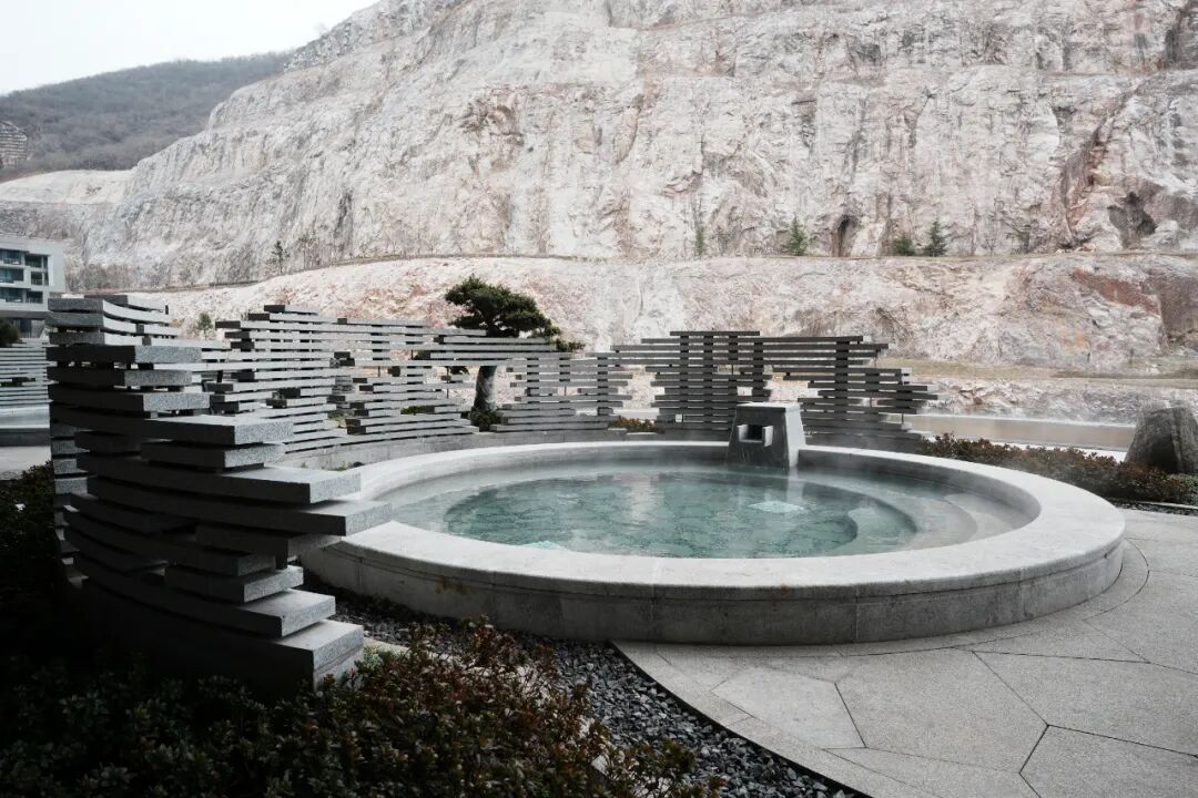 每堵隔墙都被一块巨大的汤山石“破墙而入”,既呼应了矿谷昔日肩负的采石场职责,也为同样来自汤山的温泉水助阵。