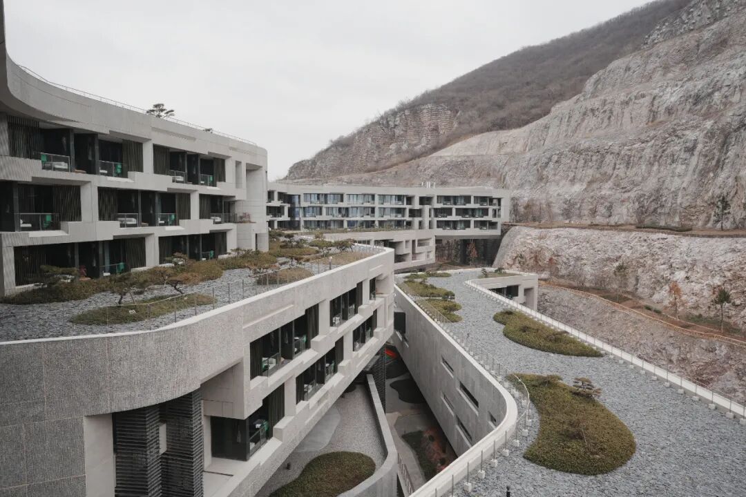 园博园悦榕庄的客房建筑看似与矿谷崖壁交融为一体,实则如天桥般跨越于矿谷之上,让建筑和矿谷各自从容呼吸。