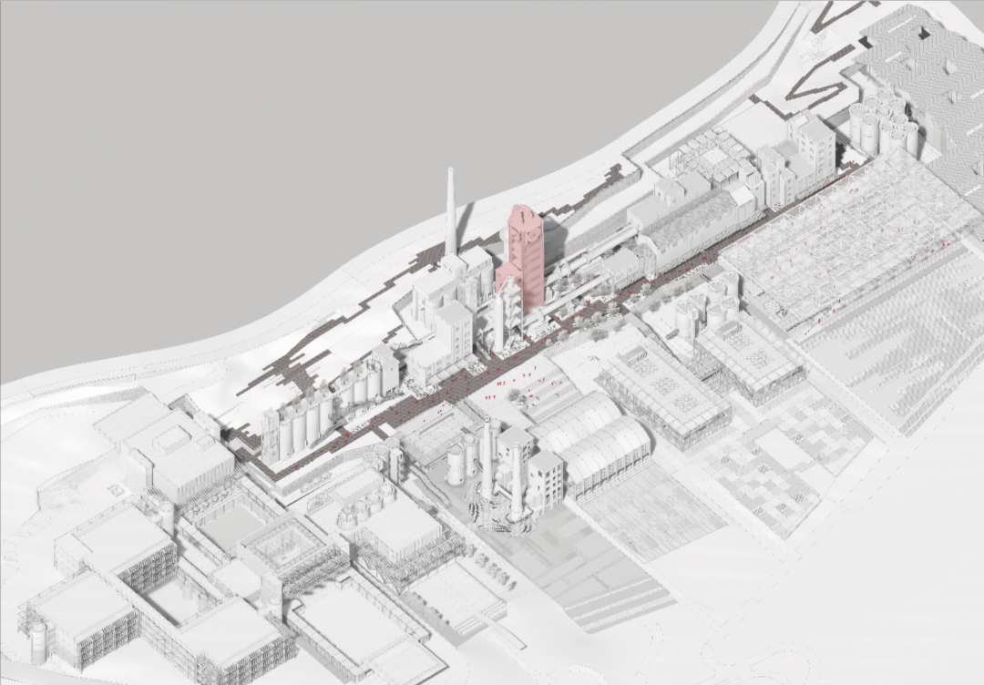 健身中心外的花园区是十足的宝藏区,其占据着矿谷最深处,酒店建筑物的支柱都从这里延展而出、客房部分的建筑如立交桥般交织在上空、恰如其分的园林设计很好串联了矿谷的前世今生故事,足够未来感,也足够尊重自然与历史。