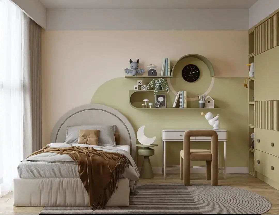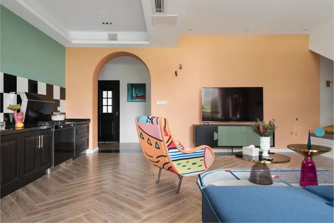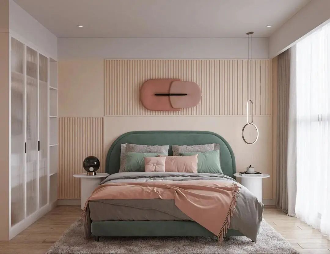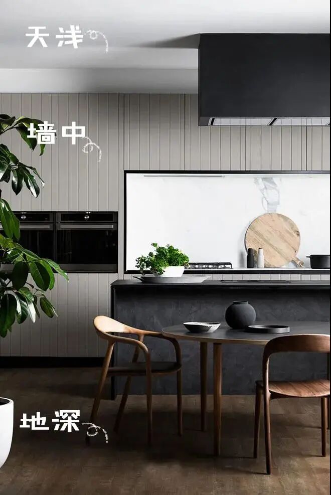 ①墙色与整体搭配,一般遵循“墙浅地中家具深”的配色原则