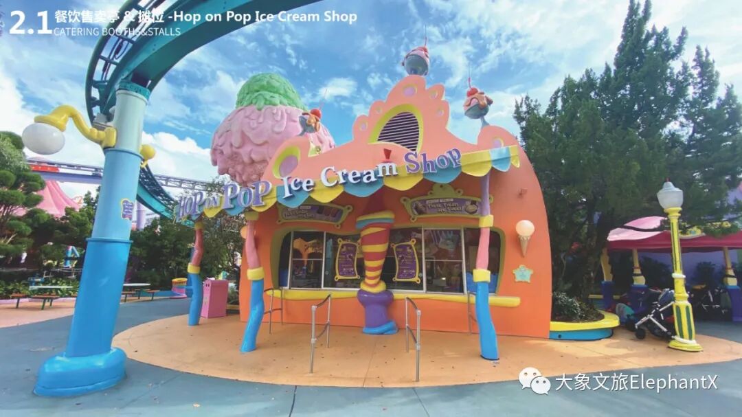乐园的售卖车&摊位除了有售卖的功能之外,还是营造主题氛围的重要组成部分,甚至可以作为节点景观和拍照点,不宜采用统一的标准样式,风格根据所在的主题区而定。