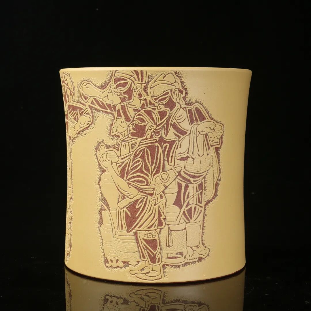 一刀一影的感知,让我觉得皮影是影子的游戏,刻砂也是。紫砂器作为创作题材的承载物 ,其包容性很强,但我更希望我所选择的题材本身在一定程度上和紫砂的属性具有某些关联。在这里,我不对皮影做专业的论述,我认为只要抓住启发性的点即可,“影”便是我进行皮影刻砂系列创作的第二个关联点。