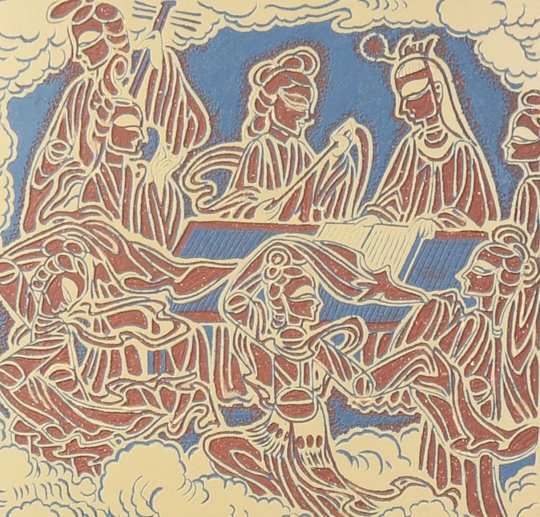 在皮影刻砂系列创作的第二个阶段,我将皮影的纹饰性的表达逐渐转化到刻砂线条本身的刀味表达上。但同时,我希望可以不通过写意性的刻法去表达刀味。在观看宋画时,偶得灵感,一件刻砂作品的刀味,不一定要落实到每一刀上。中国古代传统人物画中有很多作品线条工致简练,其组合关系及用笔既是节奏的诠释,在这里应也可以共同完成对刀味的诠释。这一阶段,运用皮影人物的造型方式,对经典的中国古代传统人物画进行了变体创作,简化了对纹饰的表达,强调皮影造型下线条韵味的呈现。
