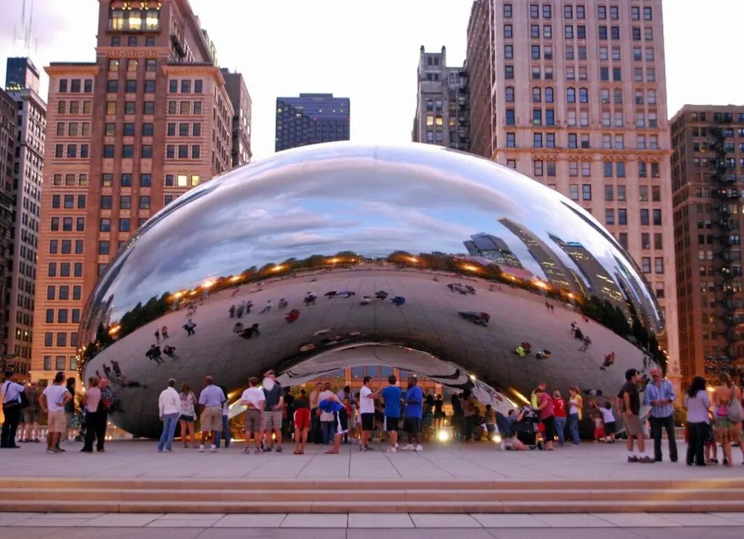 位于芝加哥千禧公园的“云门”(CloudGate)是由英国艺术家阿尼什·卡普尔所设计的公共艺术塑像作品,是美国芝加哥市的标志性建筑物之一。其外表由高度抛光的不锈钢板组成,使其整体像一面球形的镜子,像一面巨大的“哈哈镜”,将周围错落有致的建筑和自然景色映入其中,同时也吸引了城市居民和游客在雕塑前进行互动,让“云门”映出别样的自己。