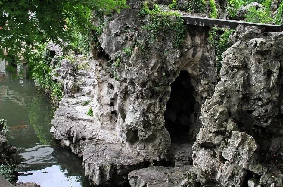 但就在这么小的空间内,戈裕良愣是玩了一出“小中见大”:溪涧、悬崖、绝壁、峡谷、石梁、幽径、山洞一应俱全,山上甚至还有亭子。