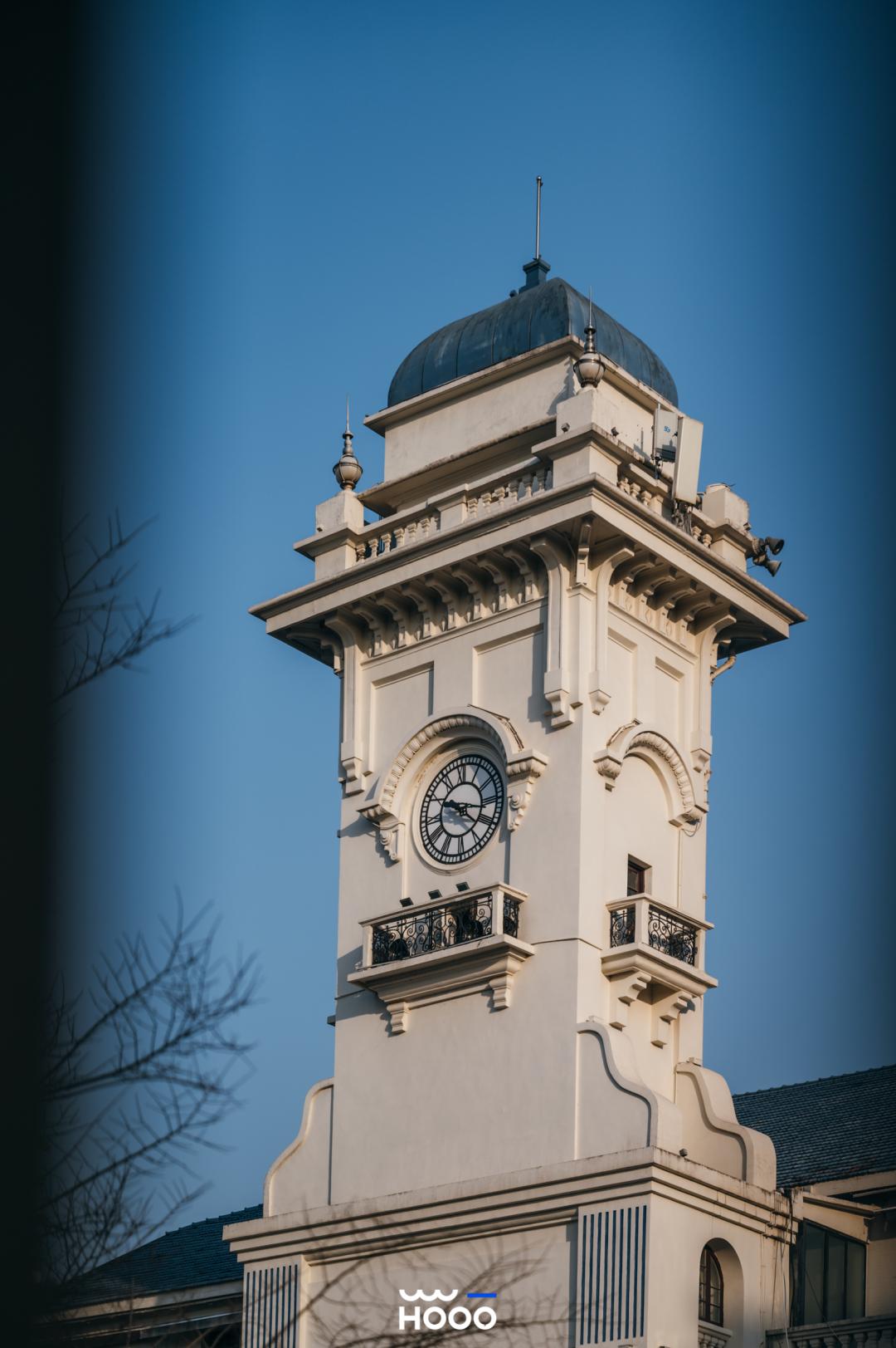 这座白色的房子,本身就像一件艺术品,爱奥尼克柱纤细秀美,钟楼静静望着长江,每天12点、18点,钟声准时敲响,和对岸的江汉关对唱。