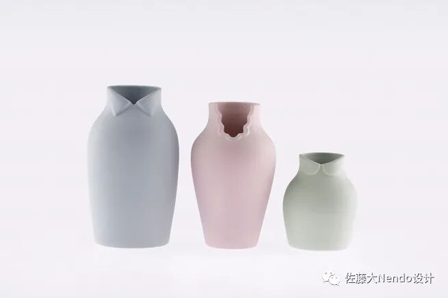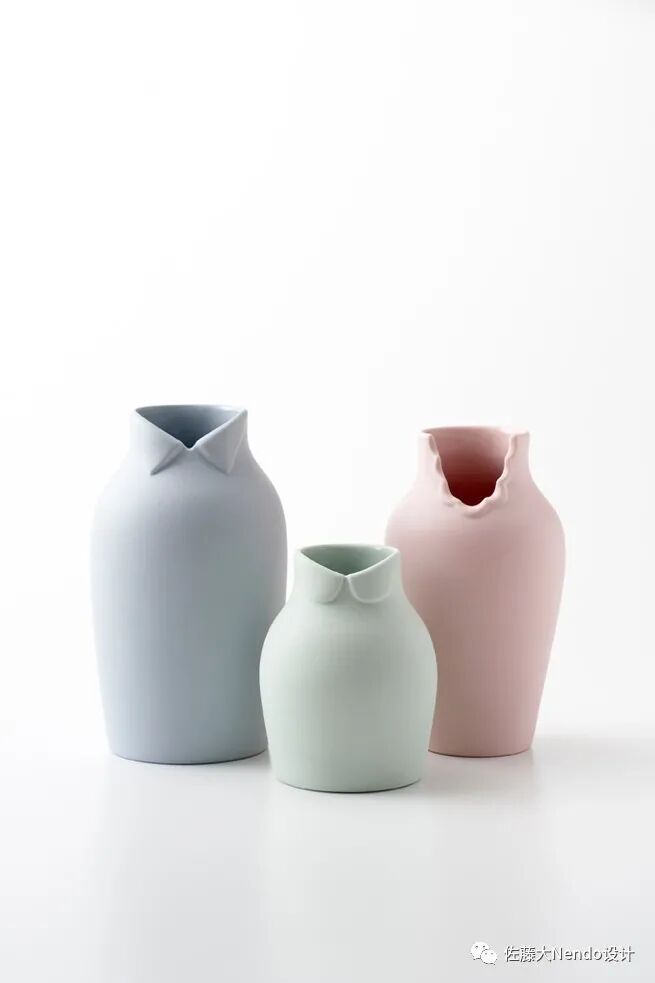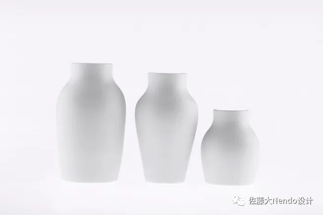 这三个花瓶是与日本陶瓷公司合作制作的,该公司位于爱知县濑户市,该地区在历史上以陶瓷闻名。家庭由三种形态组成:体格魁梧的“父亲”,身材苗条的“母亲”和身材娇小的“孩子”。每只花瓶从一个方向看都像个普通的花瓶。然而,从另一个角度看,每一种都有自己的“衣领”。当我们穿衣服的时候,我们的头发和衣服是一致的。这些花瓶表现的是花和花瓶之间的相似关系。花瓶是未上釉的白瓷,质地干净,像衣服一样。