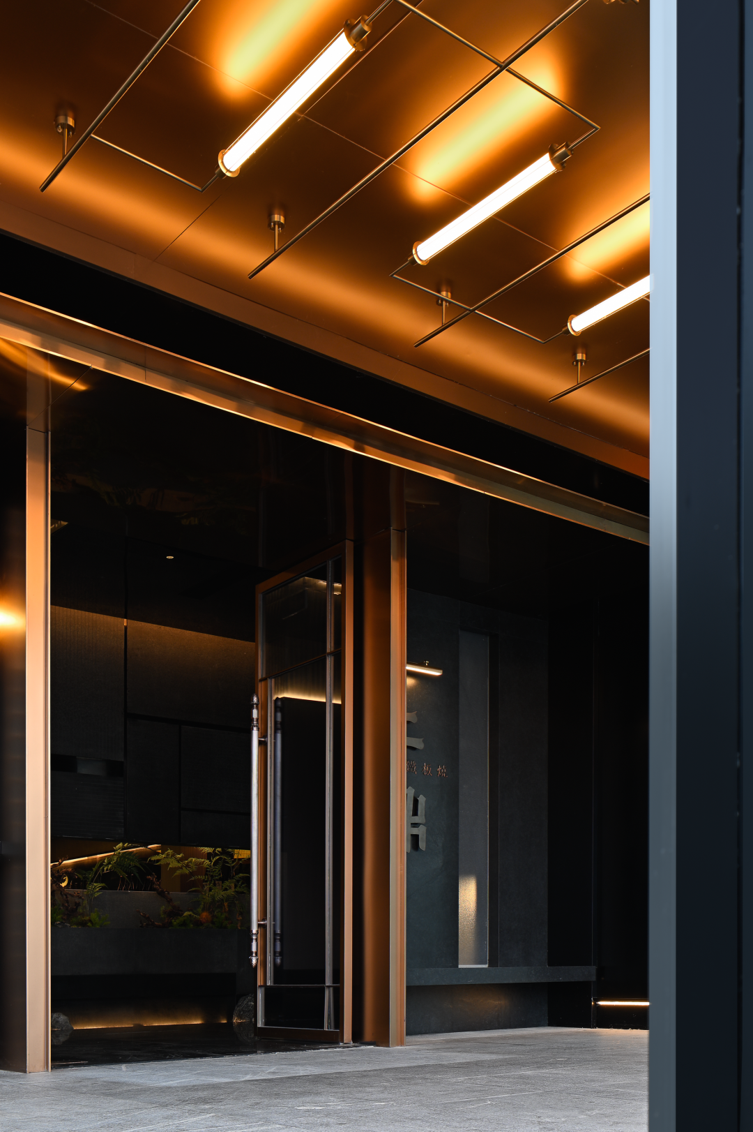 步入玄关,便不再能轻易地一眼望穿。路,是一道道展开的。跟随脚下浮动的橘色暗光勾勒路线,曲折往复之间,建立起隆重的仪式感。