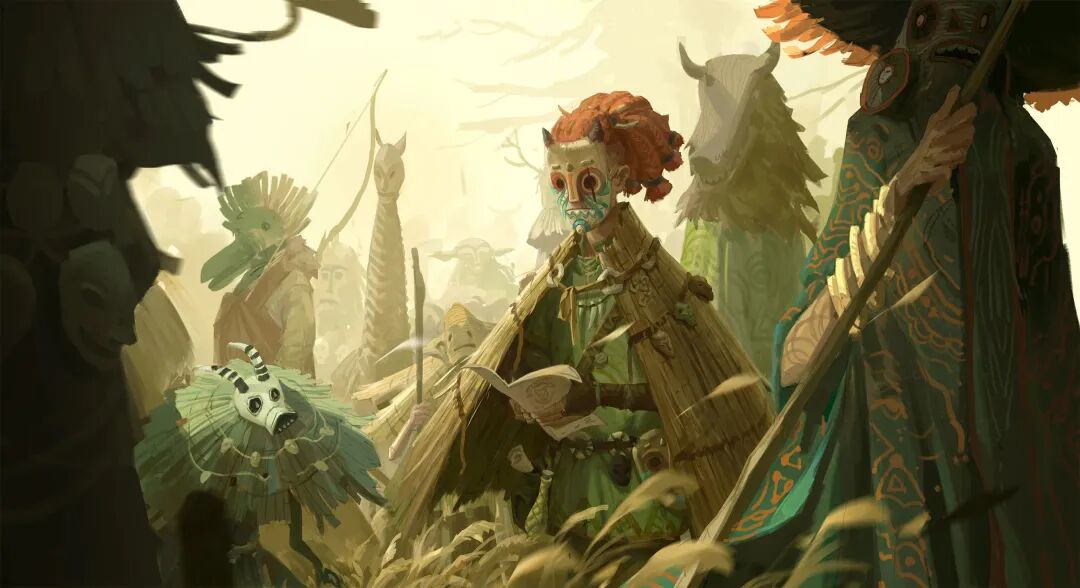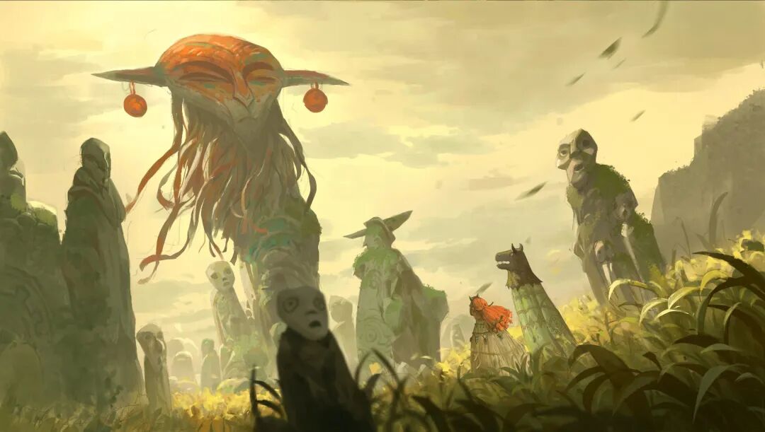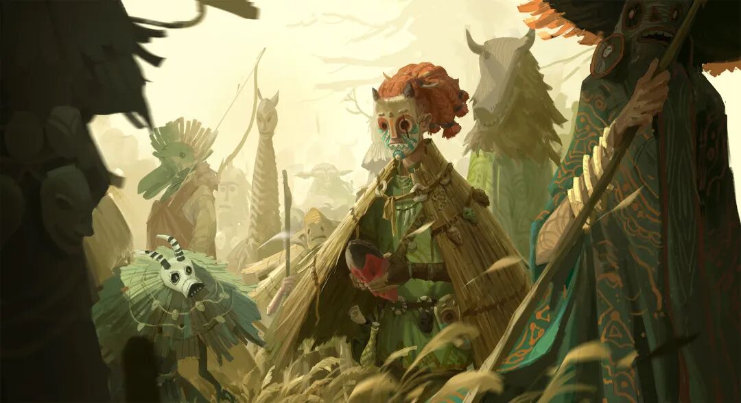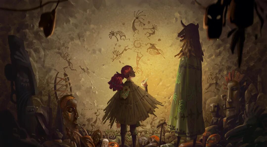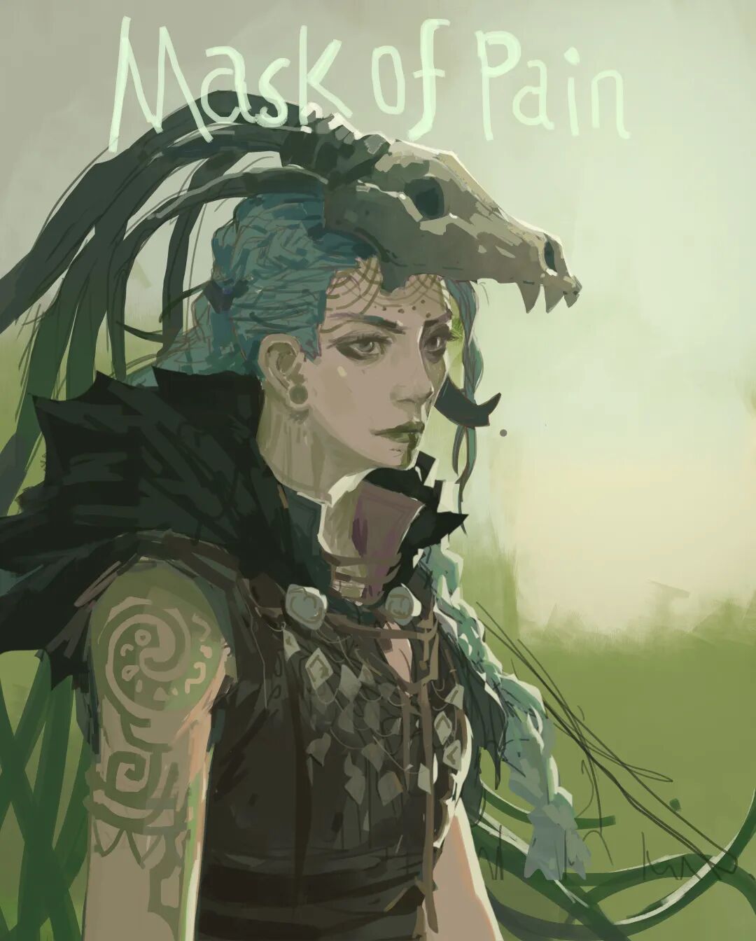面具之下大的世界是原始部落,有神明在就有邪神在,这就是大反派。部落之间都有自己信奉的神明,这里就会有很多不一样的面具,(这里代表动物的力量),女主通过学习各部族的文化取得知识与力量,(也就是各部族的面具),有鱼,鹰,鬣狗,穿山甲面具等等。