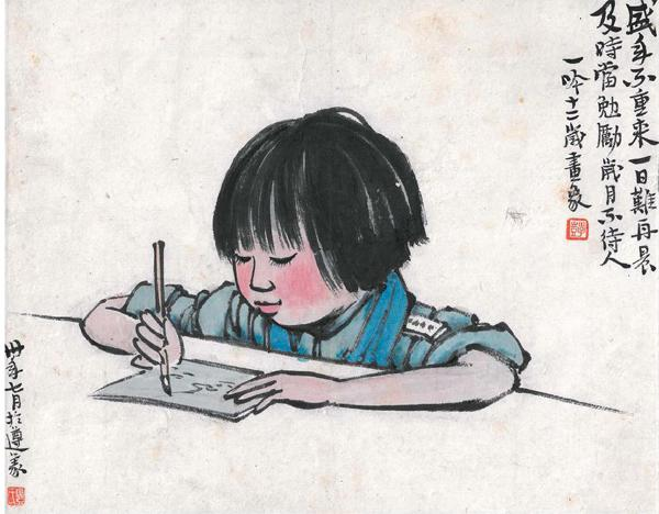 丰子恺《岁月不待人》,设色纸本册页