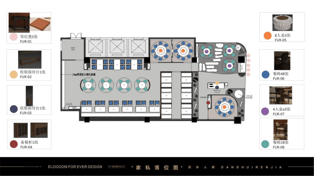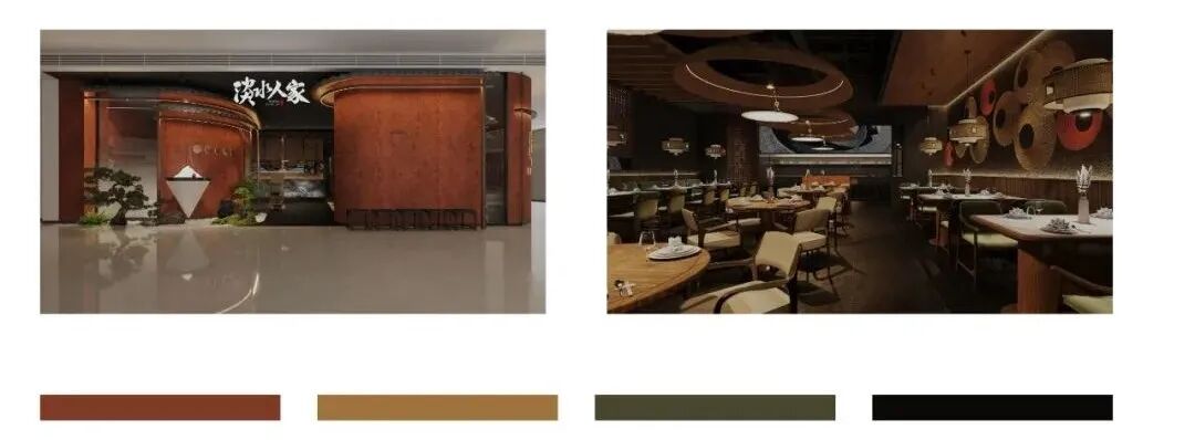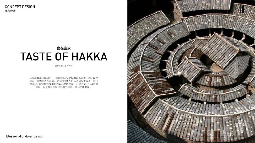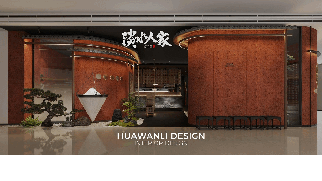 空间设计灵感来源于独特的客家文化,提炼出客家元素符号为空间故事的载体。无论是材料的构造、色彩的应用,元素符号的展示,随处可见的客家文化元素,力求展示极具亲切自然、质朴诗意的客家风味,让“淡水人家”直接打上属于客家文化的空间气质