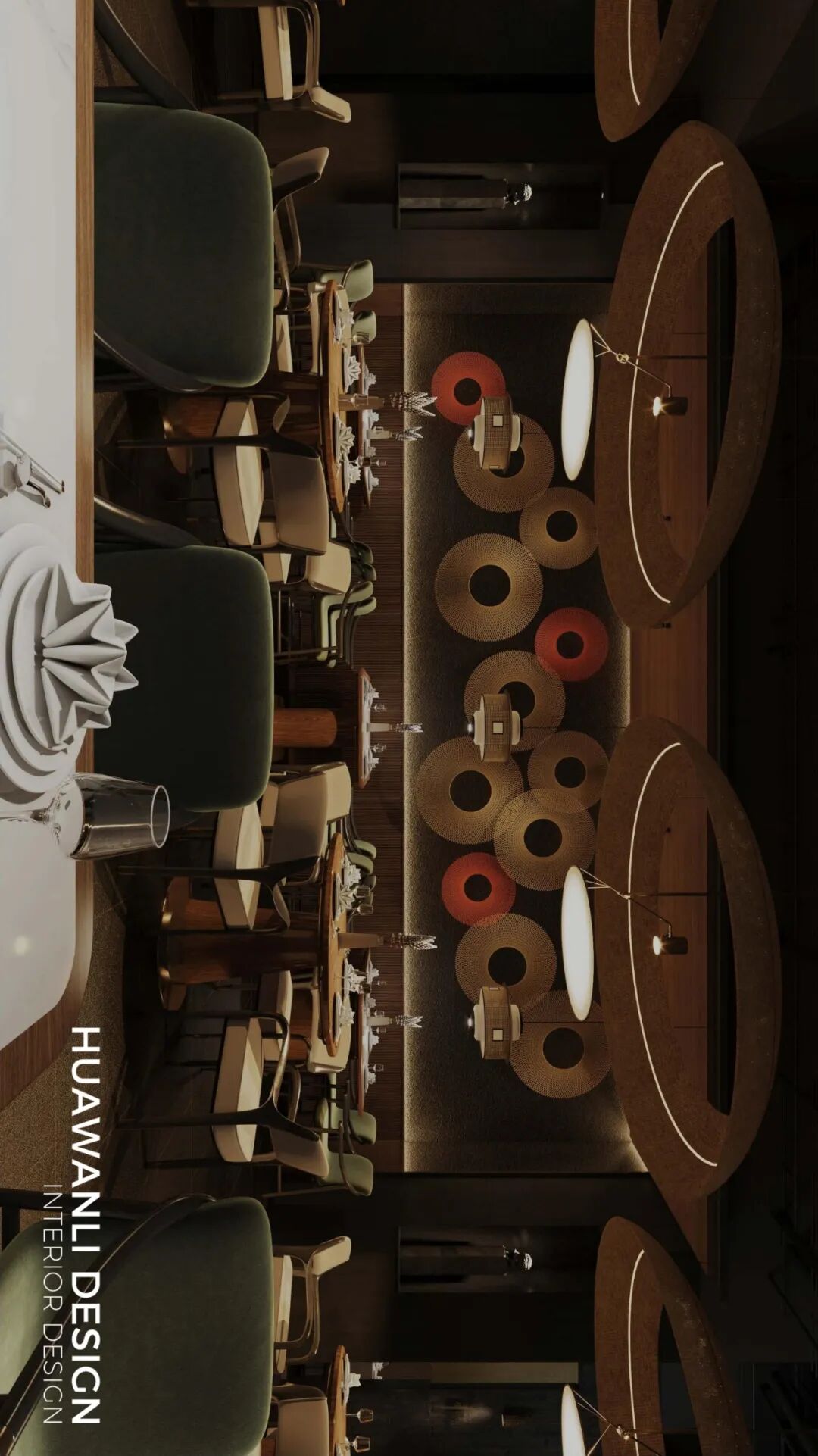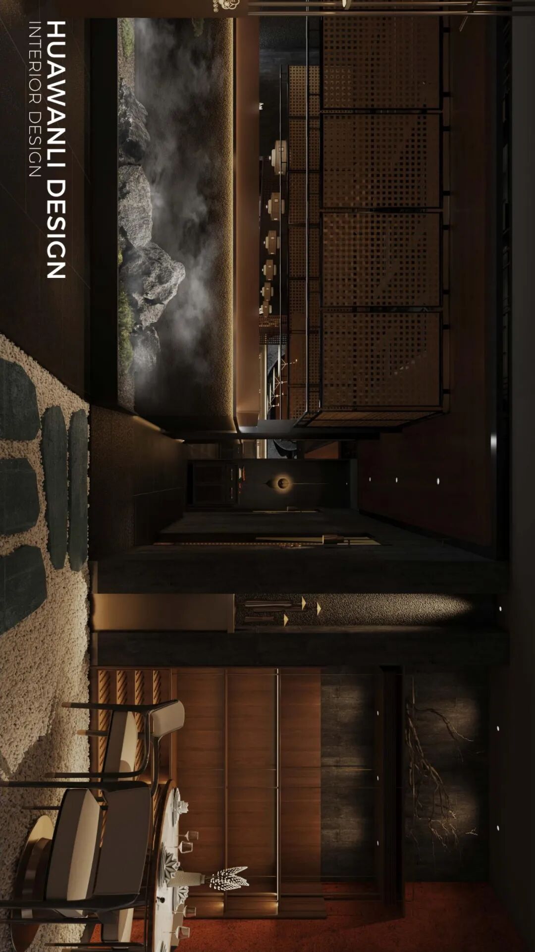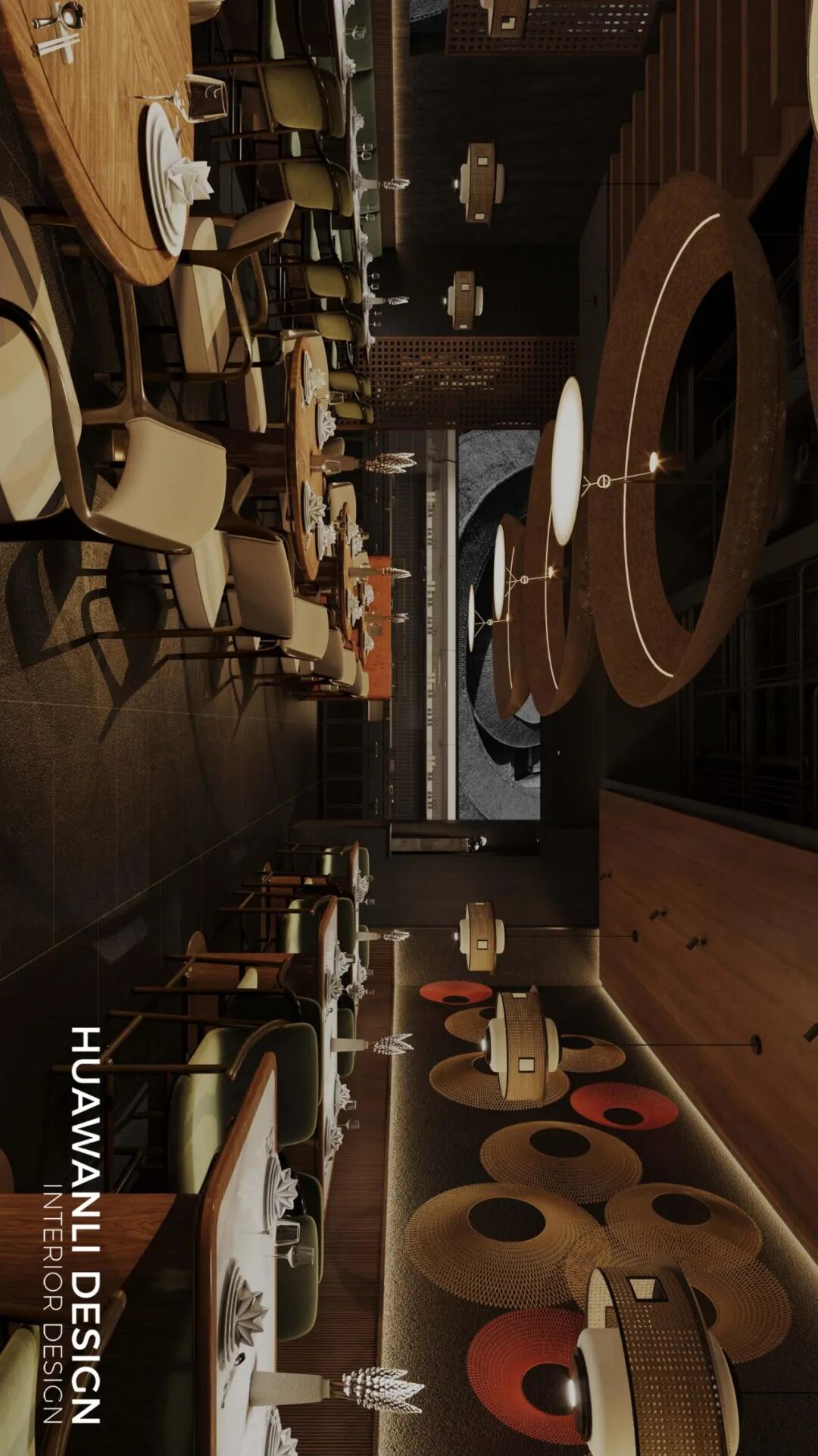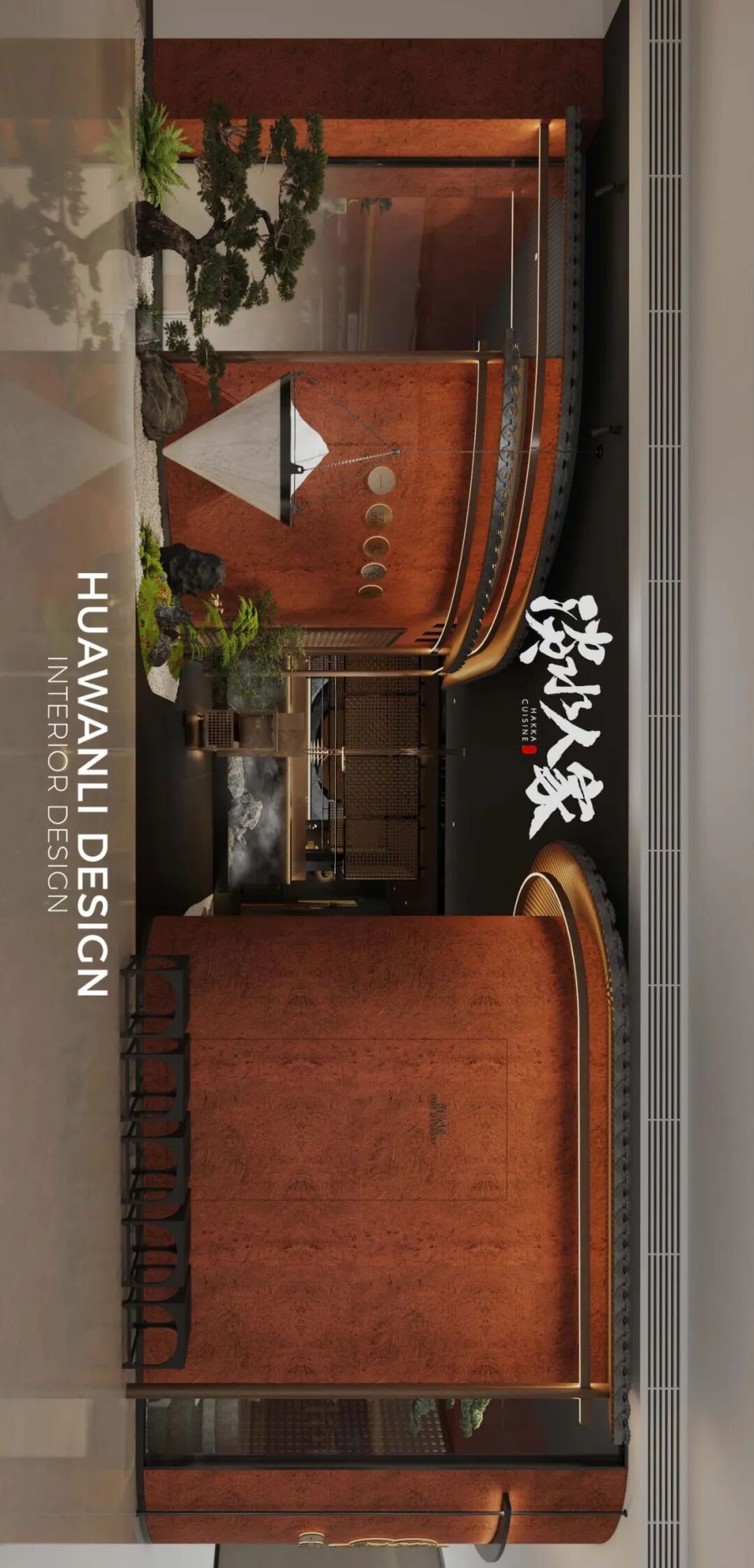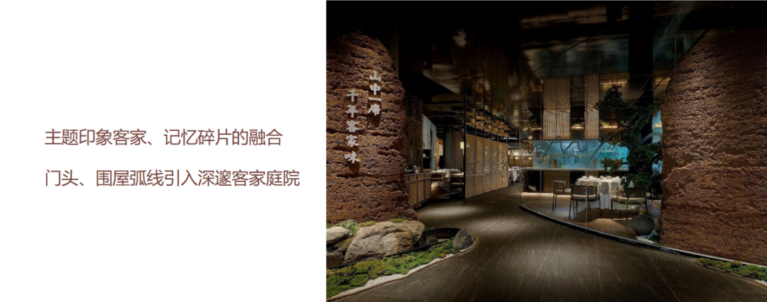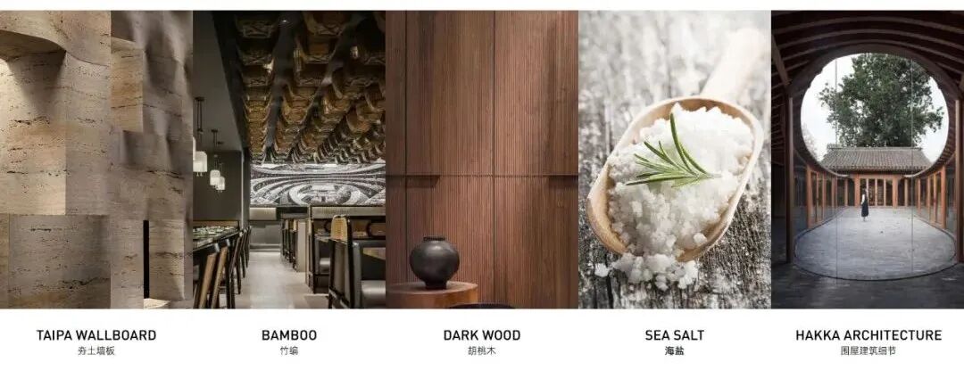 因此,花万里团队在接到项目后,着重思考的是如何在自然朴实的材质及现代创新手法结合之下,不仅要突出营造餐厅的精致度和品质感,更要强调彰显客家文化气息如由围屋造型的简化而来的空间细节,如屋顶竹编的灯笼造型,如木石材质的朴实质地,无不突显出客家人团结奋发、兼容并蓄、注重传承的文化特点。