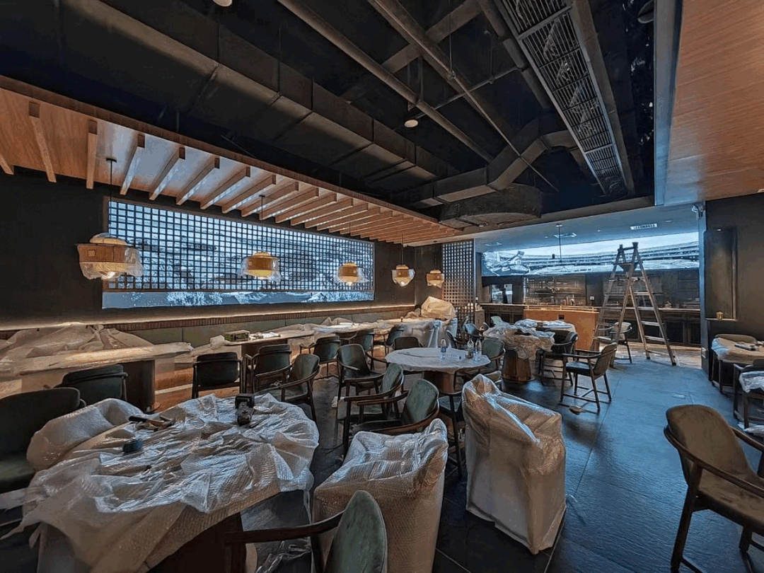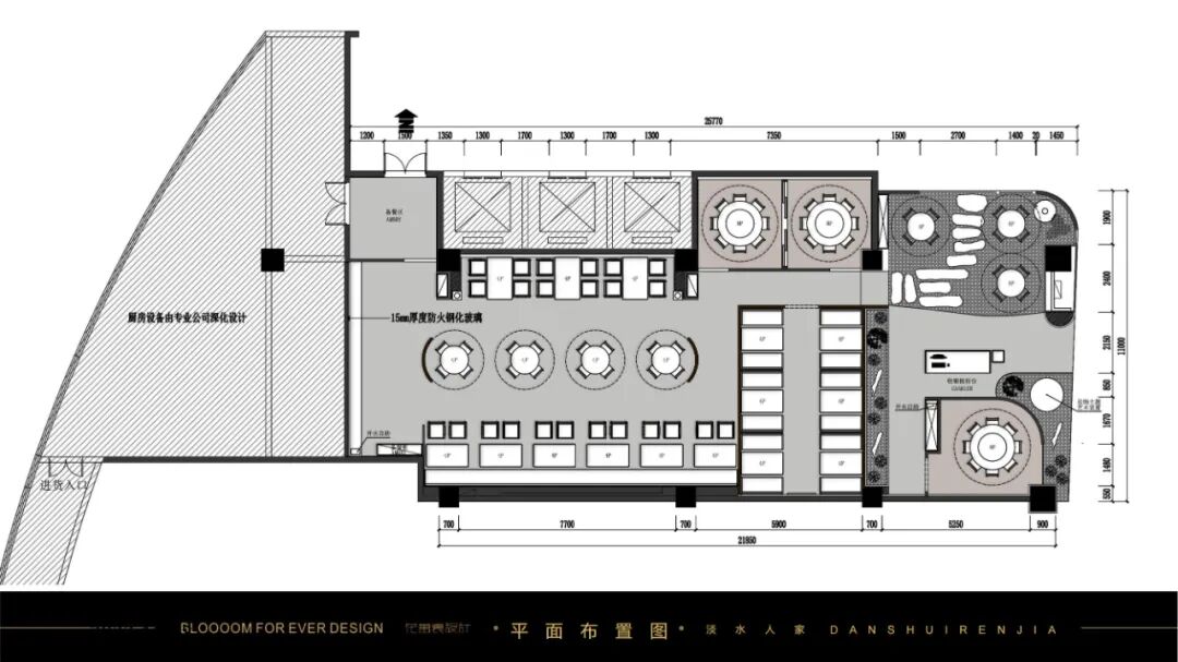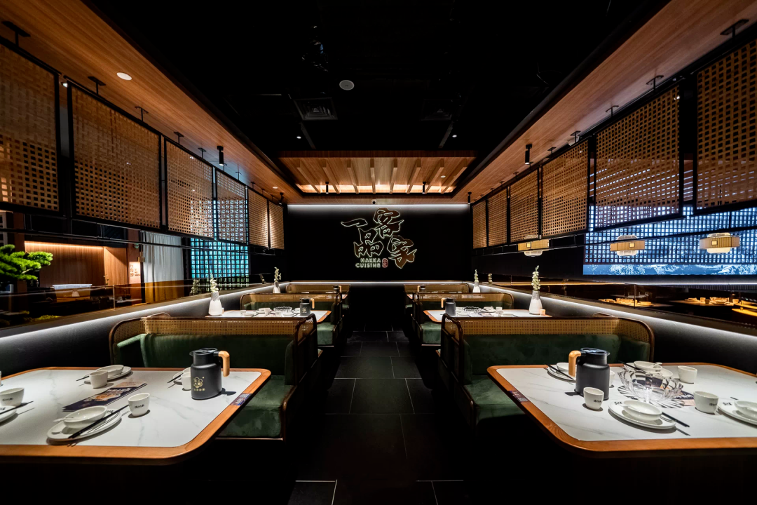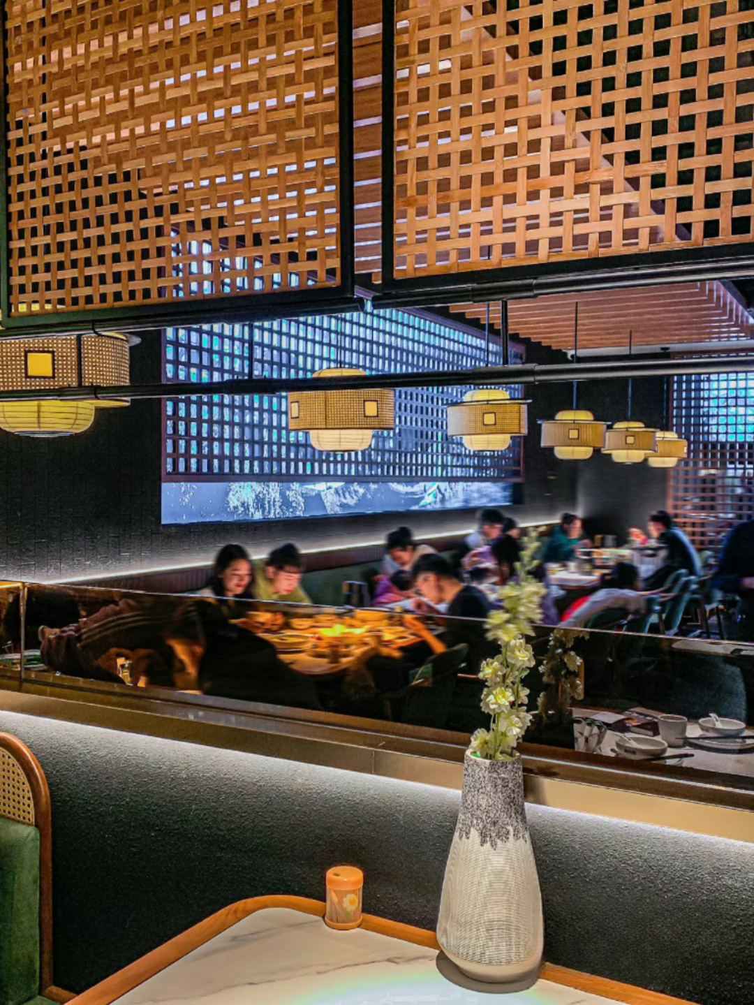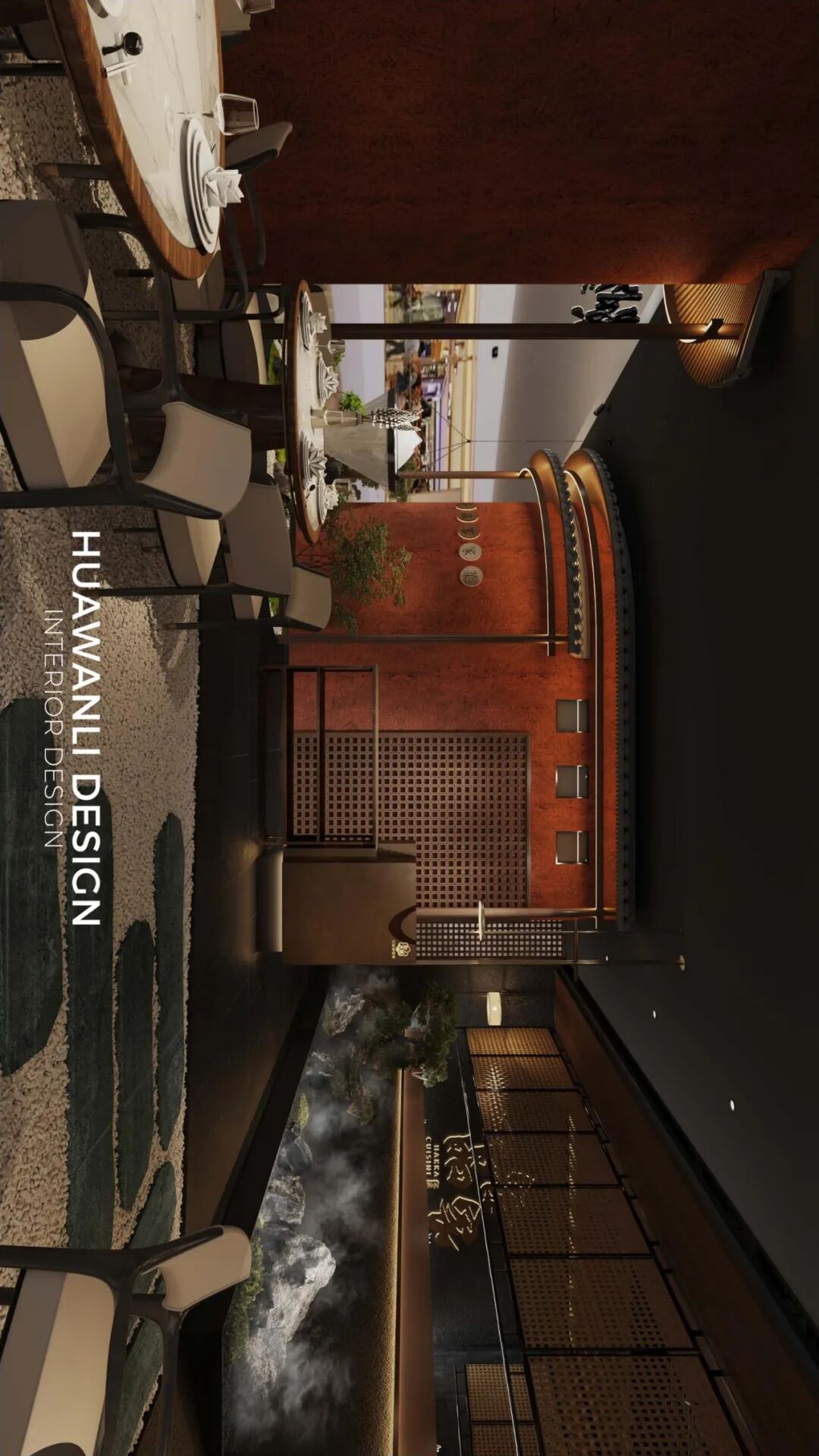 因此,花万里团队在接到项目后,着重思考的是如何在自然朴实的材质及现代创新手法结合之下,不仅要突出营造餐厅的精致度和品质感,更要强调彰显客家文化气息如由围屋造型的简化而来的空间细节,如屋顶竹编的灯笼造型,如木石材质的朴实质地,无不突显出客家人团结奋发、兼容并蓄、注重传承的文化特点。